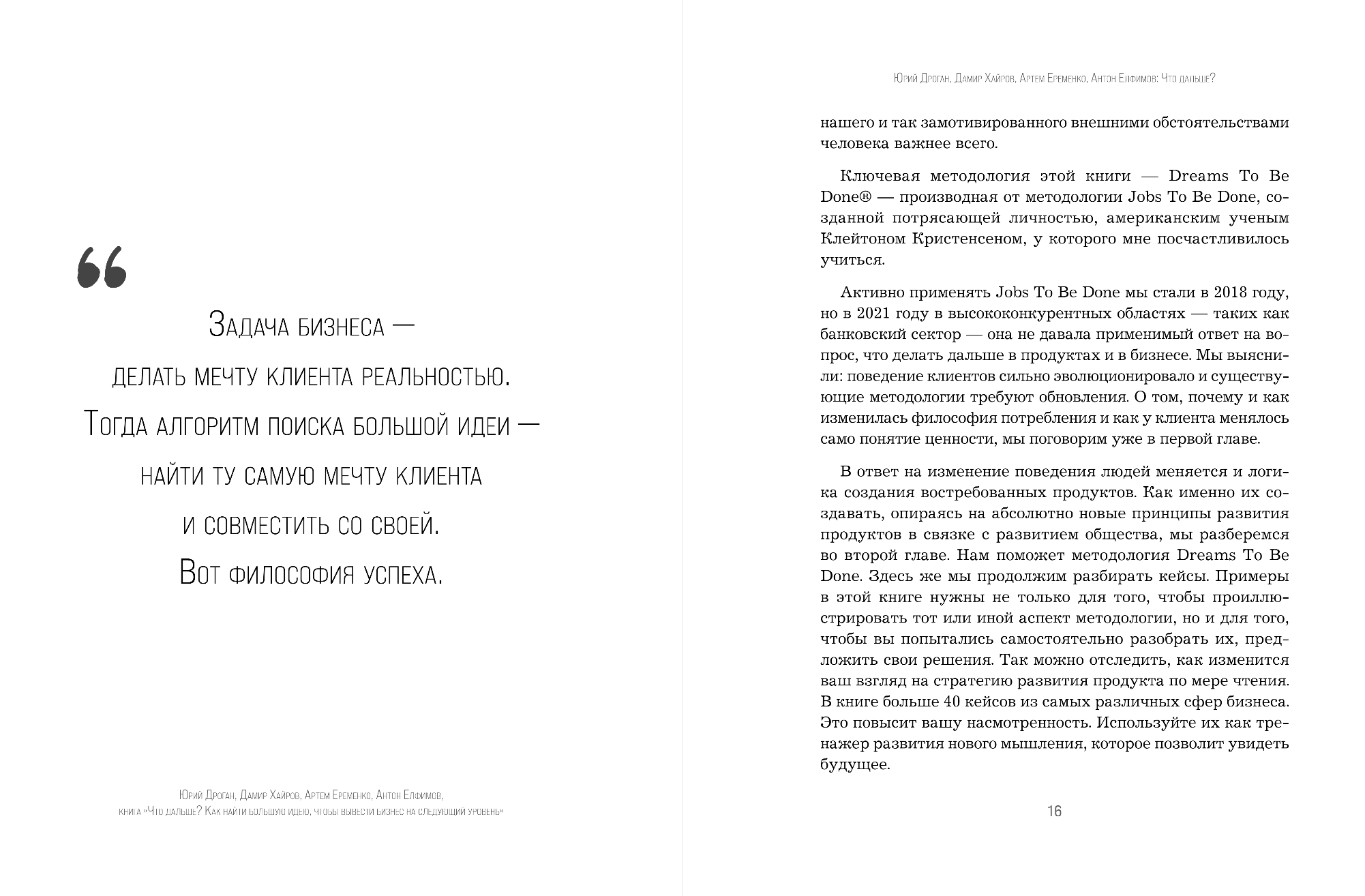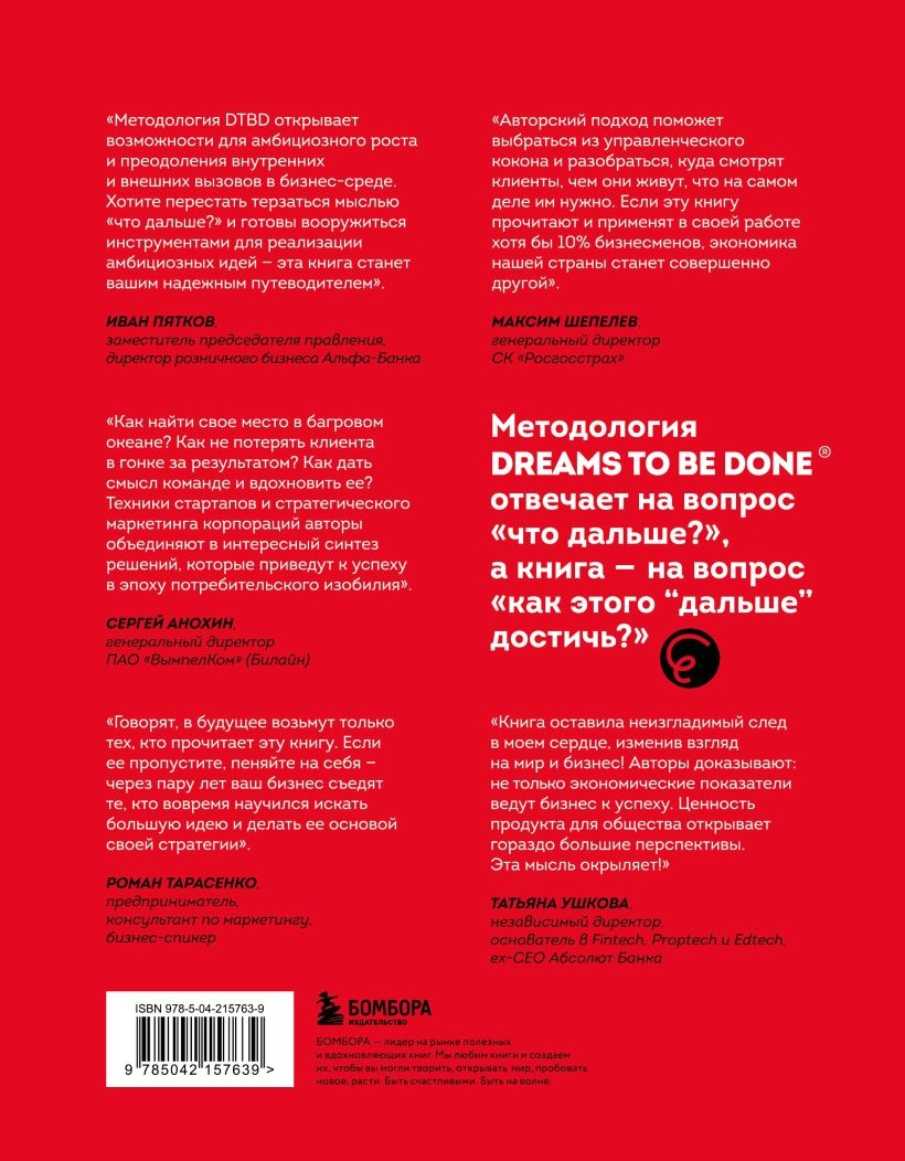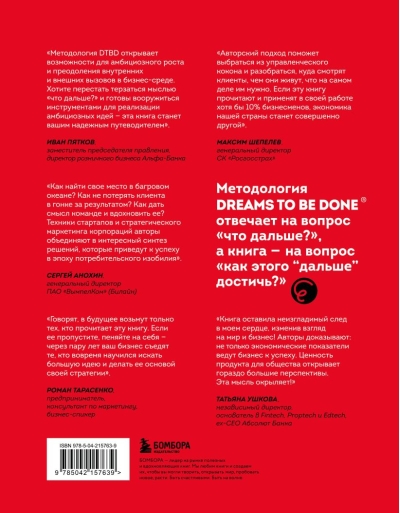 В основе авторского подхода — методология Dreams To Be Done®. Она позволяет сформулировать большую идею бизнеса, которая даст тот самый амбициозный рост. Как это сделать, авторы показывают на кейсах из реальной российской практики. А затем шаг за шагом помогают создать прикладную рыночную, маркетинговую и продуктовую стратегии на основе найденной большой идеи.