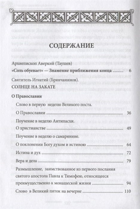 Книга избранных творений святителя Игнатия (Брянчанинова) «Солнце на закате» продолжает серию «Пророчества святых отцов о последних днях». В трудах угодника Божия представлены четкие определения, что есть Православие и почему только в нем возможно спасение. В книге находит отражение мысль, что Православие подобно солнцу, но день уже клонится к своему концу. Времена — последние... Святитель Игнатий, с ясностью видевший и понимавший это, предостерегает, говоря о предшествующем приходу антихриста состоянии земной Церкви. В предлагаемых сочинениях эта тема отражена очень ярко и представляет большую ценность для читателя.