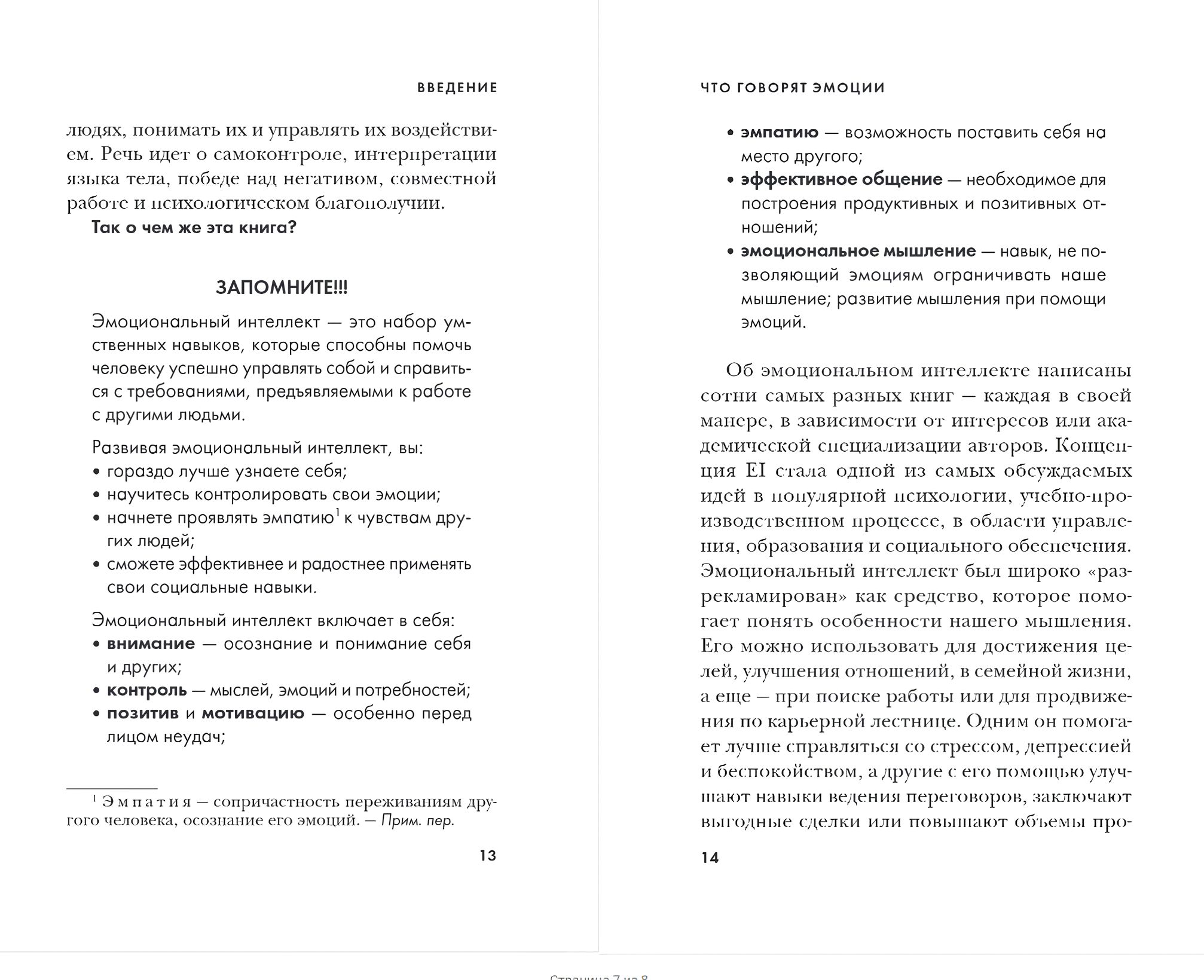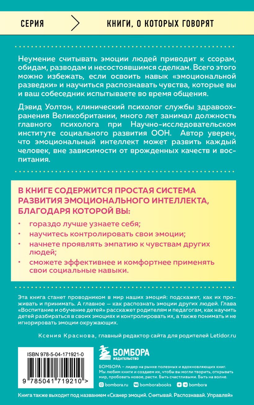 Об эмоциональном интеллекте написаны сотни самых разных книг — каждая в своей манере, в зависимости от интересов или академической специализации авторов. Концепция EI стала одной из самых обсуждаемых идей в популярной психологии, учебно-производственном процессе, в области управления, образования и социального обеспечения. В каждой главе этой книги вам будут встречаться моменты, которые нужно запомнить, практические упражнения и полезные заметки.