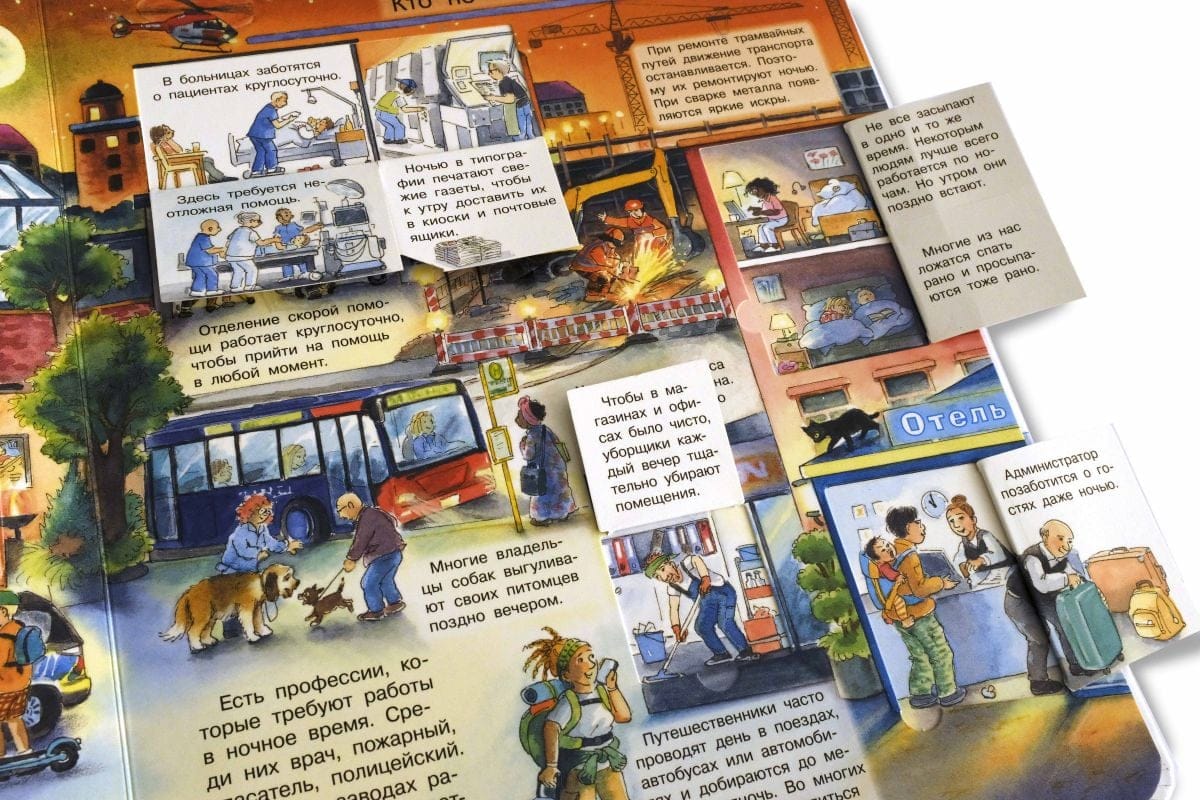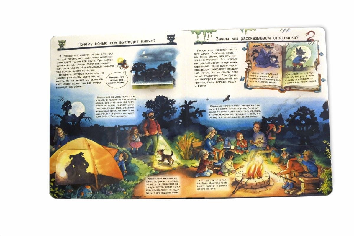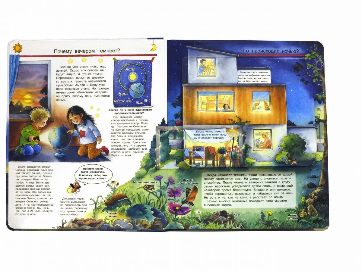 Иллюстрированная энциклопедия «Что? Почему? Зачем? Всё про ночь» увлекательно расскажет Вашему малышу обо всём самом интересном, происходящем таинственной ночью. Привлекательная книга увеличенного формата, напечатанная на качественном картоне с закруглёнными краями страниц, насыщена массой познавательной информации, красочно и занимательно отвечающей на самые любопытные вопросы: почему вечером темнеет, что такое звёзды и созвездия, почему мы видим сны, как спят животные, кто не спит ночью, что в природе светится, какие праздники мы отмечаем ночью. Тщательно прорисованные яркие картинки можно рассматривать часами, замечая и открывая для себя новые удивительные факты, а многочисленные окошки и клапаны с различной дополнительной информацией не только дадут необходимые пояснения и исчерпывающие ответы на вопросы ребёнка, но и превратят чтение в увлекательную игру, разовьют внимание и любознательность. Книги серии «для почемучек» – идеальный подарок для маленьких любознательных читателей.
