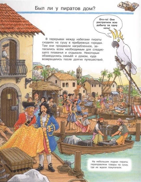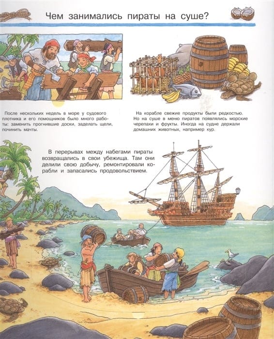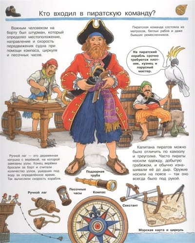 Яркая и привлекательная книга увеличенного формата напечатана на высококачественном ламинированном картоне повышенной прочности с закругленными краями страниц. Каждый книжный разворот энциклопедии насыщен массой интереснейшей информации, красочно и занимательно, в игровой форме, рассказывающей о полной опасностей и приключений жизни морских флибустьеров. Здесь можно найти простые и понятные ответы на вопросы: - Как появилось пиратство? - Как жили пираты и кто входил в пиратскую команду? - Как выглядел пиратский корабль и как брали корабли на абордаж? - Чем занимались пираты на суше и как распоряжались добычей? - Был ли у пиратов дом и что они делали в старости? - Где промышляют современные пираты? Тщательно прорисованные картинки можно рассматривать часами, замечая и открывая для себя новые удивительные факты, а многочисленные окошки и клапаны с различной дополнительной информацией не только дадут необходимые пояснения и исчерпывающие ответы на вопросы ребёнка, но и превратят чтение в увлекательную игру, разовьют внимание и любознательность.