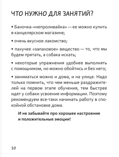 Предложенные в книге упражнения позволяют домашним собакам заниматься любимым делом, да ещё и в компании с хозяином. А это не только делает жизнь питомцев насыщеннее и интереснее, но и «‎подтягивает»‎ их послушание, улучшая отношения в тандеме владелец-собака. Выполнять упражнения могут все собаки без исключения, никаких ограничений по возрасту, здоровью, породе или темпераменту.
