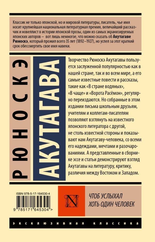 Творчество Рюноскэ Акутагавы пользуется заслуженной популярностью как в нашей стране, так и во всем мире, а его самые известные повести и рассказы, такие как «‎В стране водяных»‎, «‎В чаще»‎ и «‎Ворота Расёмон»‎, регулярно переиздаются. Но собранные в этом издании письма школьным друзьям, учителям и коллегам-писателям позволяют взглянуть на известного японского литератора с другой, не столь известной стороны и показывают нам Акутагаву-человека, со всеми его надеждами, мечтами и разочарованиями. А представленные в сборнике эссе и статьи демонстрируют взгляд Акутагавы на литературу, критику, различия между Востоком и Западом.