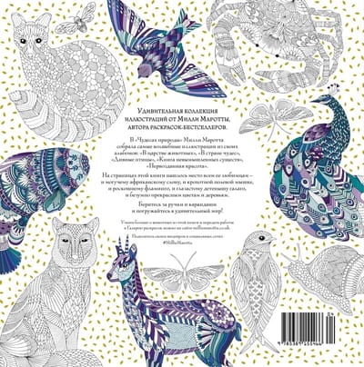 Художник-иллюстратор Милли Маротта выросла в сказочном Уэльсе. Она работает в студии у моря и черпает вдохновение в живой природе. В этой книге Милли Маротта собрала самые любимые и волшебные иллюстрации из своих раскрасок-бестселлеров.
