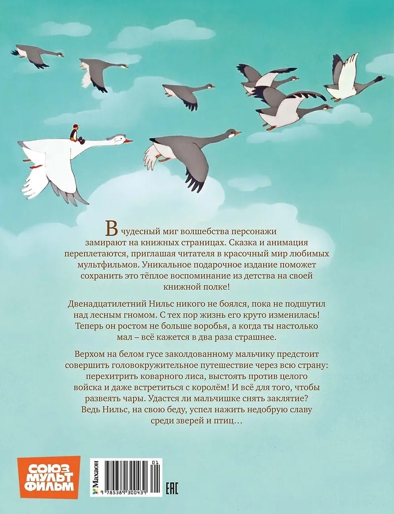 Верхом на белом гусе заколдованному мальчику предстоит совершить головокружительное путешествие через всю страну: перехитрить коварного лиса, выстоять против целого войска и даже встретиться с королём! И всё для того, чтобы развеять чары. Удастся ли мальчишке снять заклятие? Ведь Нильс, на свою беду, успел нажить недобрую славу среди зверей и птиц…