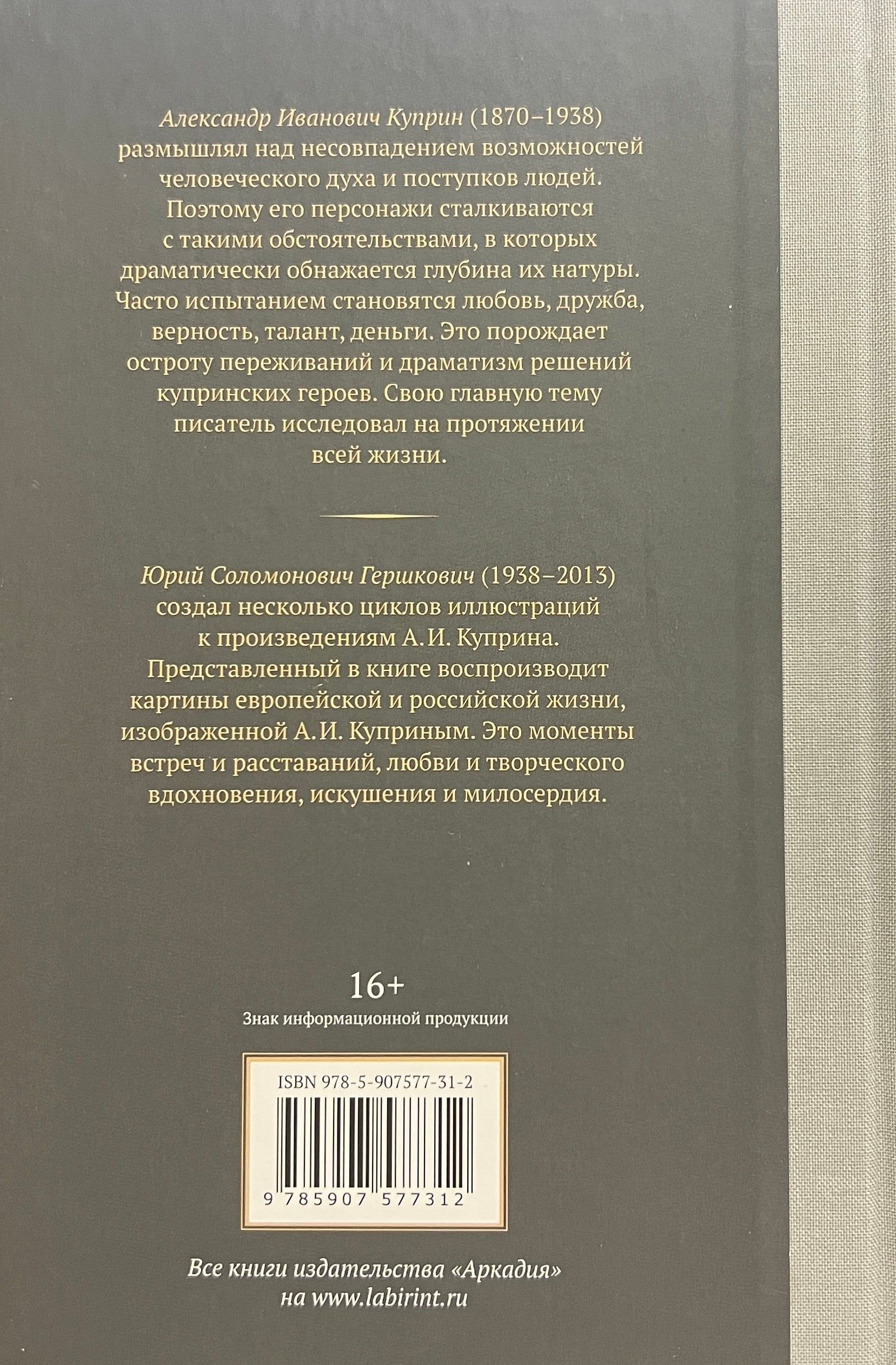 Иллюстрации к произведениям Куприна выполнены Юрием Соломо­новичем Гершковичем (1938-2013). Художник очень точно почувствовал основные настроения купринских героев, передав их в позах, жестах, эмо­циональных состояниях изображенных персонажей.