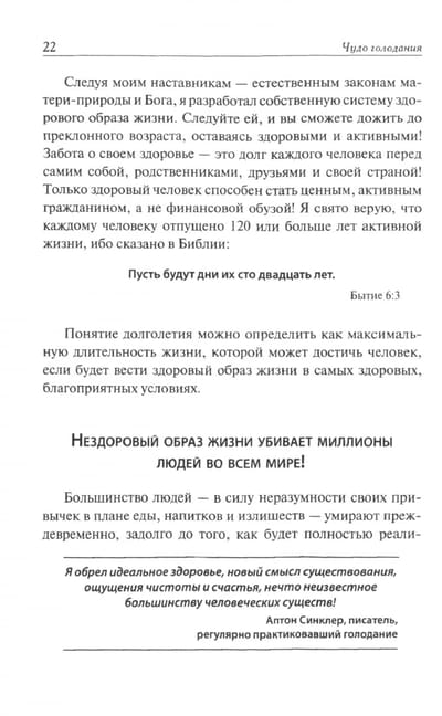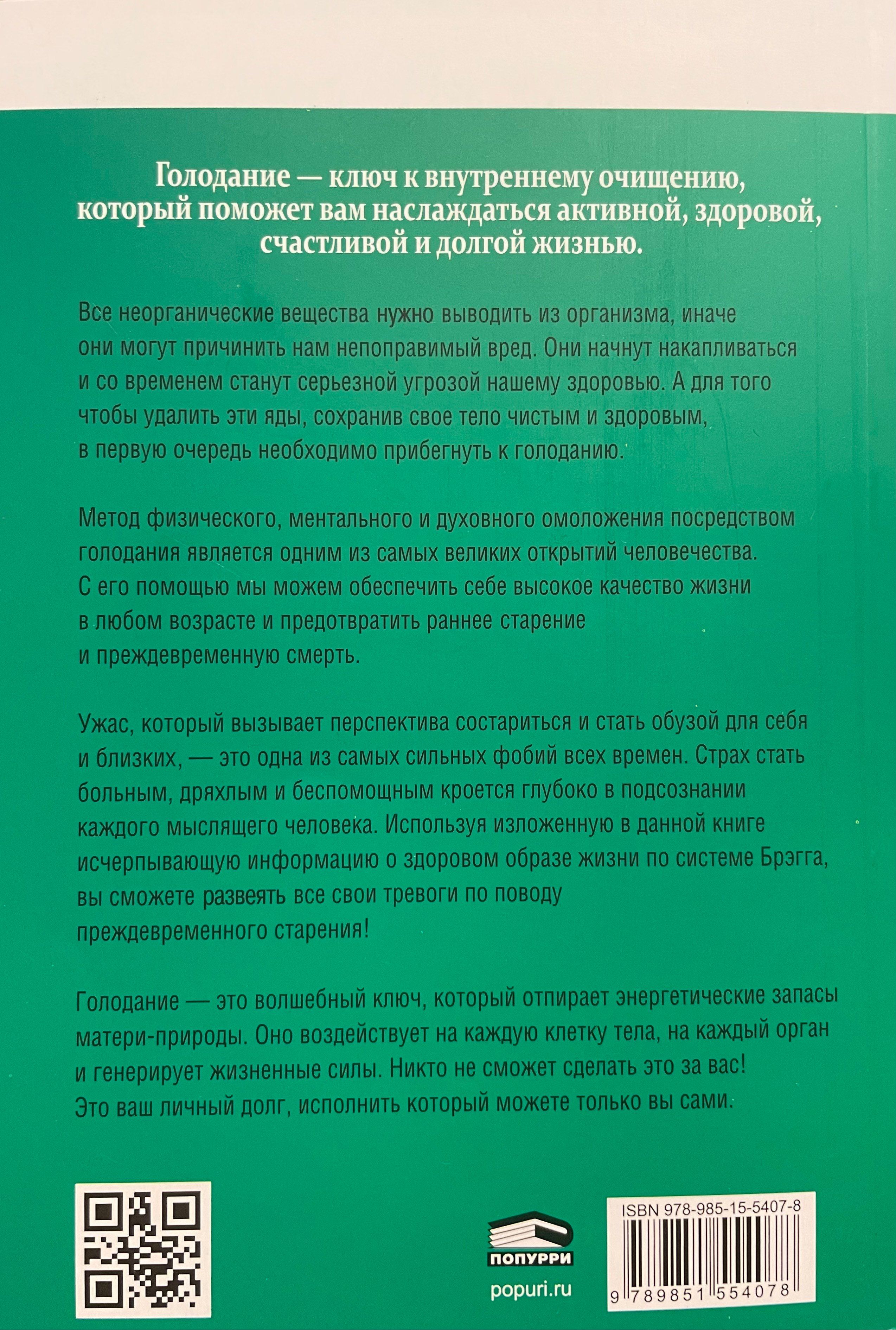 Полная версия знаменитой книги Поля Брэгга публикуется впервые. Представленная в ней система физического, ментального и духовного омоложения посредством голодания является одним из самых великих открытий человечества. С ее помощью мы можем обеспечить себе высокое качество жизни в любом возрасте и предотвратить раннее старение и преждевременную смерть. Книга даст вам все ключи к внутреннему очищению, которые помогут каждому человеку наслаждаться активной, здоровой, счастливой и долгой жизнью.
