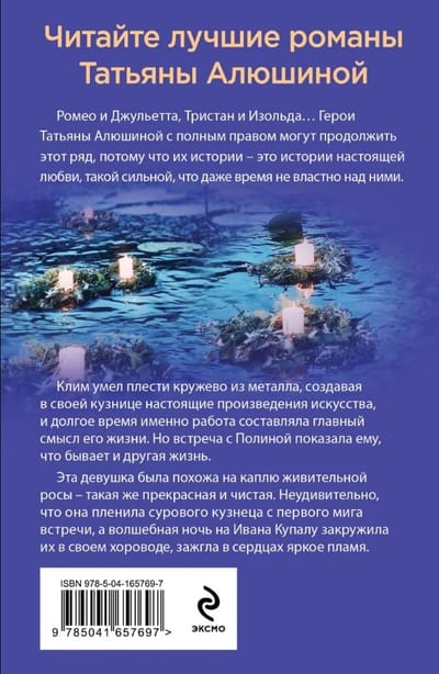 Клим умел плести кружево из металла, создавая в своей кузнице настоящие произведения искусства, и долгое время именно работа составляла главный смысл его жизни. Но встреча с Полиной показала ему, что бывает и другая жизнь. Эта девушка была похожа на каплю живительной росы — такая же прекрасная и чистая. Не удивительно, что она пленила сурового кузнеца с первого мига встречи, а волшебная ночь на Ивана Купалу закружила их в своем хороводе, зажгла в сердцах яркое пламя.