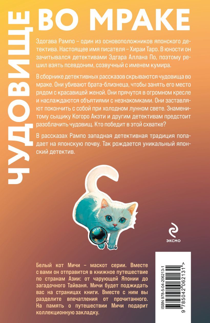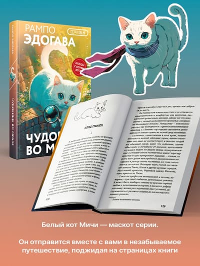 Белый кот Мичи — маскот серии. Вместе с вами он оправится в книжное путешествие по странам Азии: от чарующей Японии до загадочного Тайваня. Мичи будет поджидать вас на страницах книги. Вместе с ним вы разделите впечатления от прочитанного. На память о путешествии Мичи подарит коллекционную закладку.
