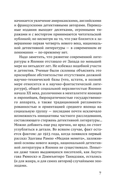 В рассказах Рампо западная детективная традиция попадает на японскую почву. Так рождается уникальный японский детектив.