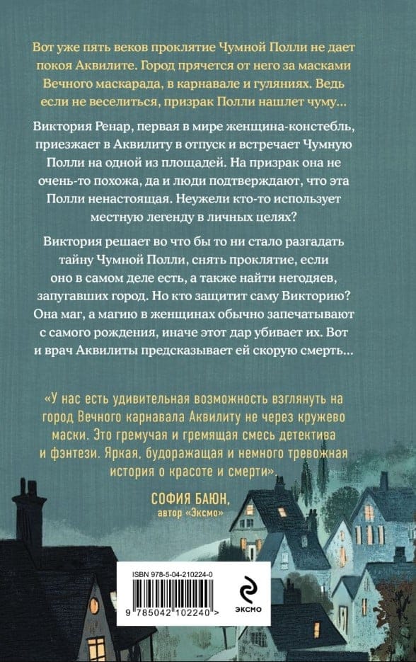 Вот уже пять веков проклятие Чумной Полли не дает покоя Аквилите. Город прячется от него за масками Вечного маскарада, в карнавале и гуляниях. Ведь если не веселиться, призрак Полли нашлет чуму...