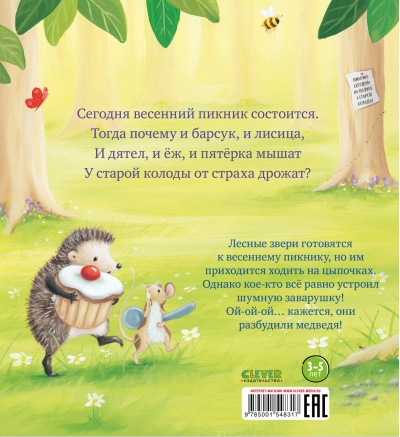 Лесные звери готовятся к весеннему пикнику, но им приходится ходить на цыпочках. Однако кое‑кто всё равно устроил шумную заварушку! Ой-ой-ой… кажется, они разбудили медведя!