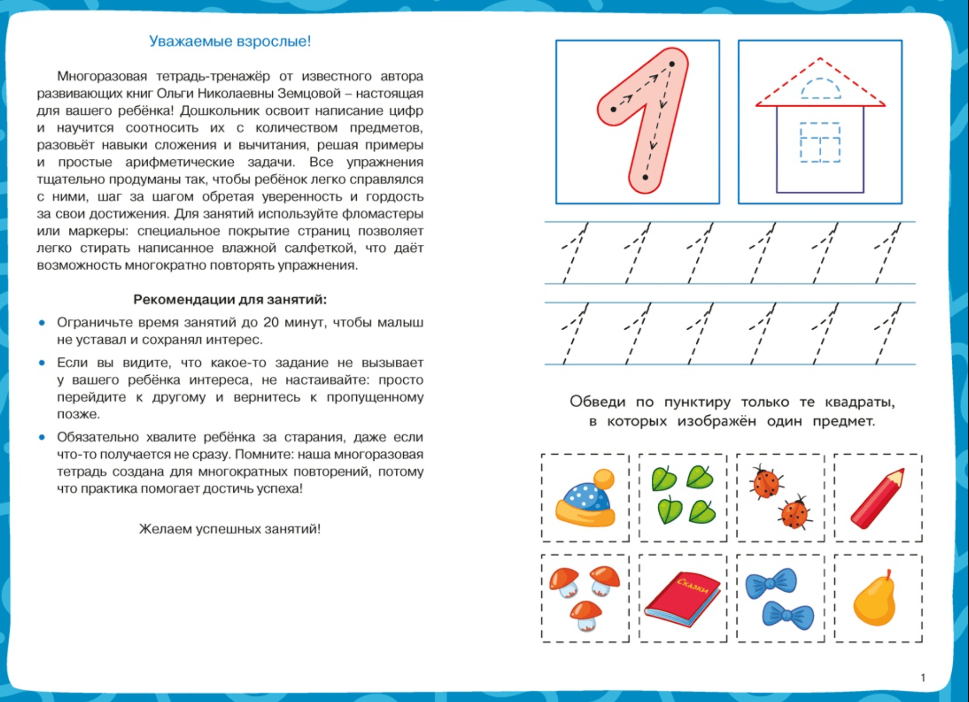 Многоразовая тетрадь разработана известным педагогом и автором развивающих пособий О. Н. Земцовой специально для того, чтобы сделать процесс обучения дошкольников по-настоящему интересным и удобным.