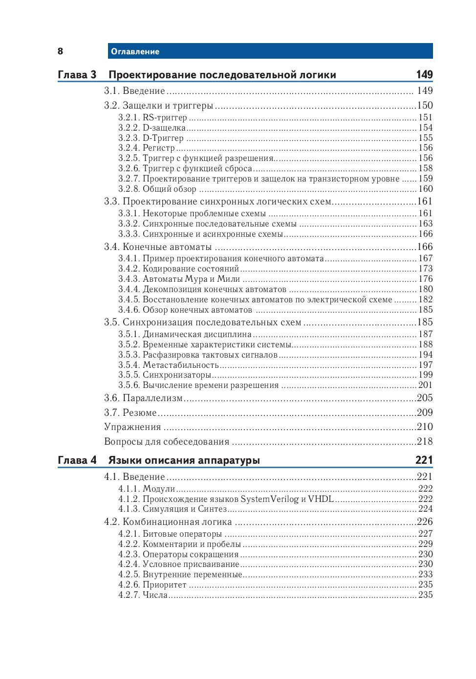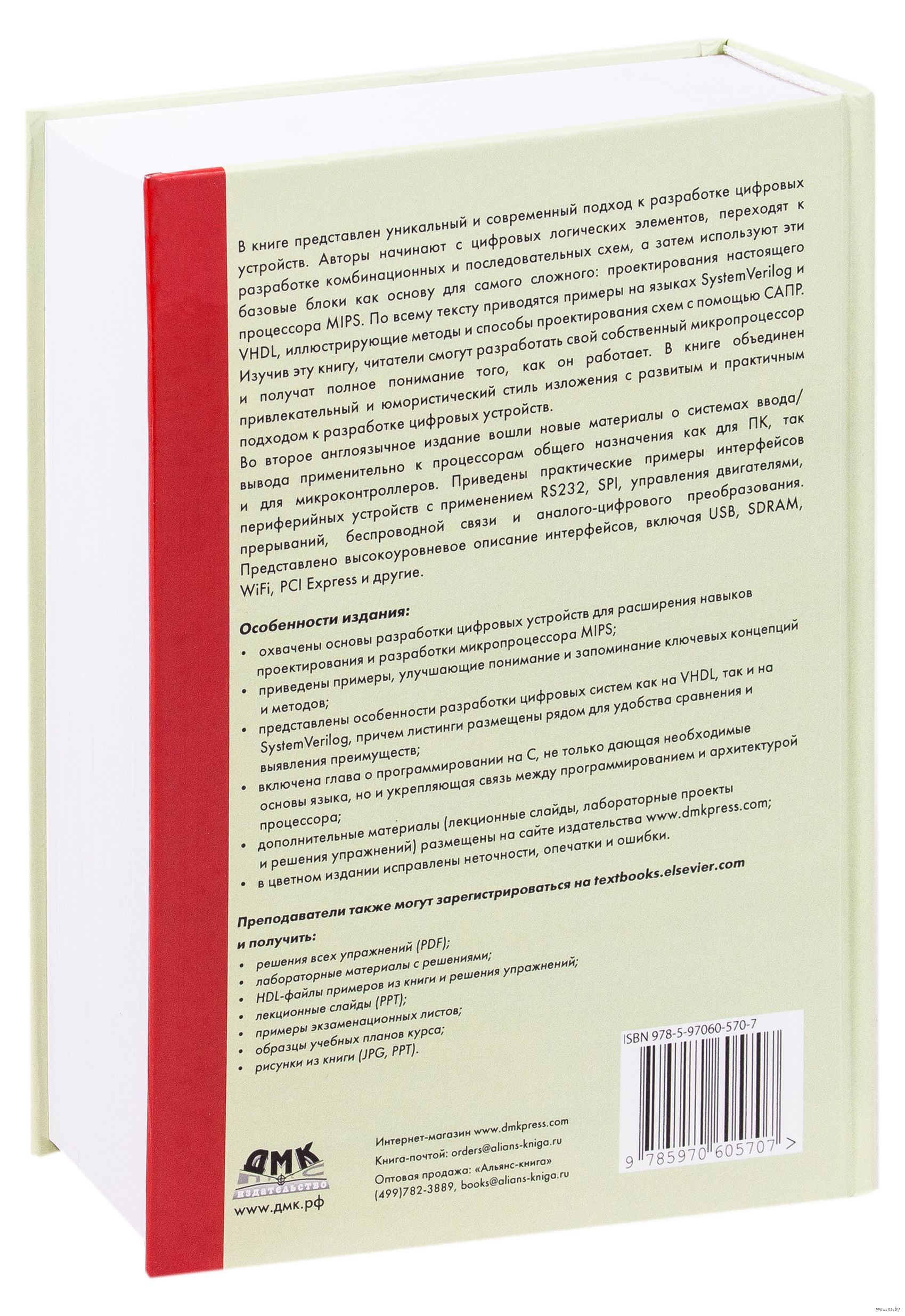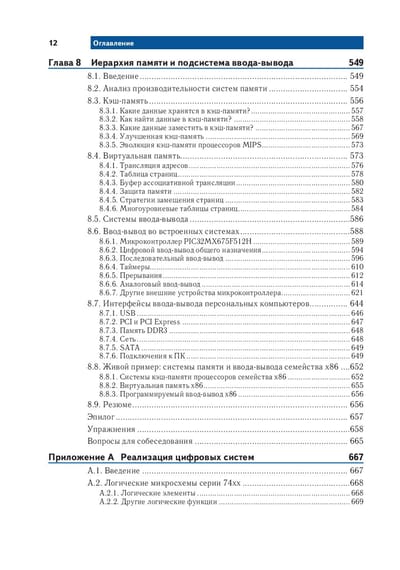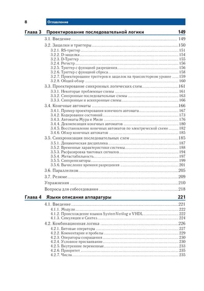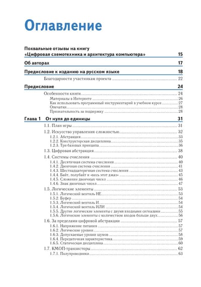 В книге «Цифровая схемотехника и архитектура компьютера» представлен уникальный и современный подход к разработке цифровых устройств. Харрис и Харрис начинают с цифровых логических элементов, переходят к разработке комбинационных и последовательных схем, а затем используют эти базовые блоки как основу для самого сложного: проектирования настоящего процессора MIPS. По всему тексту приводятся примеры на языках SystemVerilog и VHDL, иллюстрирующие методы и способы проектирования схем с помощью САПР. Изучив эту книгу, читатели смогут разработать свой собственный микропроцессор и получат полное понимание того, как он работает. Харрис и Харрис объединили привлекательный и юмористический стиль изложения с развитым и практичным подходом к разработке цифровых устройств. Во второе издание вошли новые материалы о системах ввода/вывода применительно к процессорам общего назначения как для ПК, так и для микроконтроллеров, встречающихся практически везде. Новое издание содержит практические примеры интерфейсов периферийных устройств с применением RS232, SPI, управления двигателями, прерываний, беспроводной связи и аналого-цифрового преобразования. Представлено высокоуровневое описание интерфейсов ввода / вывода ПК, включая USB, SDRAM, WiFi, PCI Express и другие. Помимо этого добавлены материалы о программировании и примеры кода на SystemVerilog (заменяющий Verilog) наряду с VHDL, а также дополнительные упражнения и новое приложение по программированию на C, раскрывающее связь между программированием и архитектурой процессора. Особенности издания: - охватывает основы разработки цифровых устройств и расширяет навыки проектирования до разработки микропроцессора MIPS; - в текст включены примеры, улучшающие понимание и запоминание ключевых концепций и методов; - примеры разработки цифровых систем представлены как на VHDL, так и на SystemVerilog (с обновлением до второго издания Verilog), причем листинги размещены рядом для удобства сравнения и выявления преимуществ; - включена глава о программировании на C, не только дающая необходимые основы языка, но и укрепляющая связь между программированием и архитектурой процессора; - на сайте книги есть ссылки на САПР для проектирования FPGA компаний Altera и Mentor Graphics, лекционные слайды, лабораторные проекты и решения упражнений.