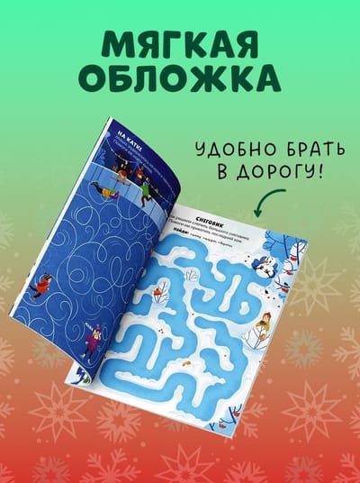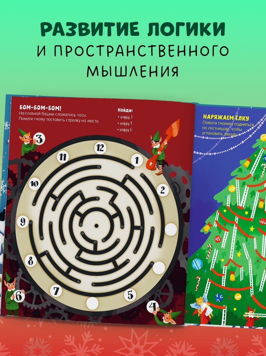 Прохождение «Новогодних лабиринтов» — увлекательное занятие, которое помогает вырабатывать у ребенка множество полезных навыков: мелкую моторику, усидчивость, сосредоточение. По красочной книге ребенок сможет придумать собственную сказочную историю. В случае затруднений на последних страницах книжки есть готовые решения. Лабиринты выходят в мягкой обложке, легко поместятся в сумке или детском рюкзаке и помогут родителям занять малыша во время долгой поездки или в гостях.