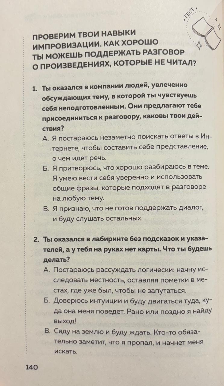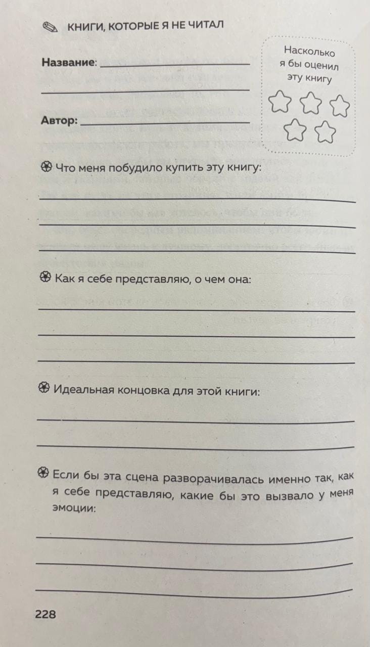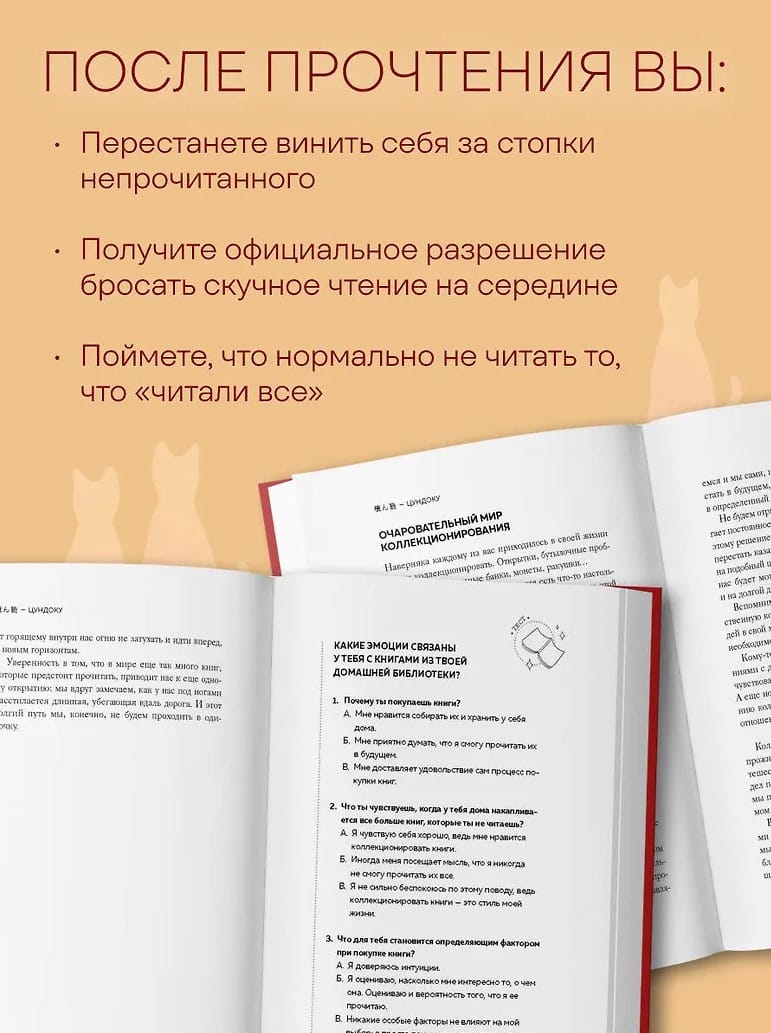 Вам предстоит настоящее путешествие по миру книжных ритуалов: читательские дневники, которые учат замечать свои желания; упражнения для тех, кто коллекционирует смыслы так же бережно, как и тома; 100 лучших оправданий для тех, кто снова купил новую книгу, так и не прочитав старые.