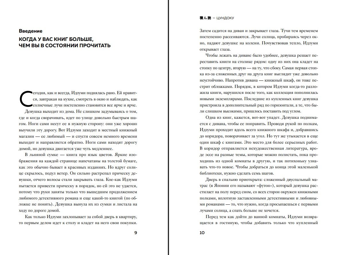Японское слово «цундоку» состоит из двух иероглифов: «укладка» и «чтение». Жить среди непрочитанных книг и чувствовать себя при этом свободно — и есть тонкое искусство цундоку, освоить которое стоит каждому, кто частенько посещает книжные выставки и магазины.