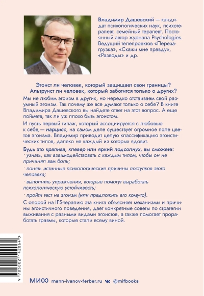 С опорой на IFS-терапию эта книга объясняет механизмы и причины эгоистичного поведения, дает конкретные советы по стратегии выживания с разными видами эгоистов, а также помогает проработать травмы, которые стали всему виной.