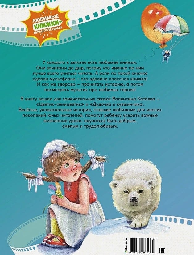 В книгу вошли две замечательные сказки Валентина Катаева — «Цветик-семицветик» и «Дудочка и кувшинчик». Весёлые, увлекательные истории, ставшие любимыми многими поколениями юных читателей, помогут ребёнку усвоить важные жизненные уроки, научиться быть добрым, смелым и трудолюбивым.