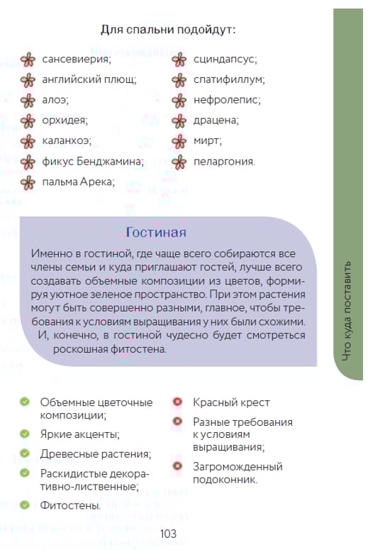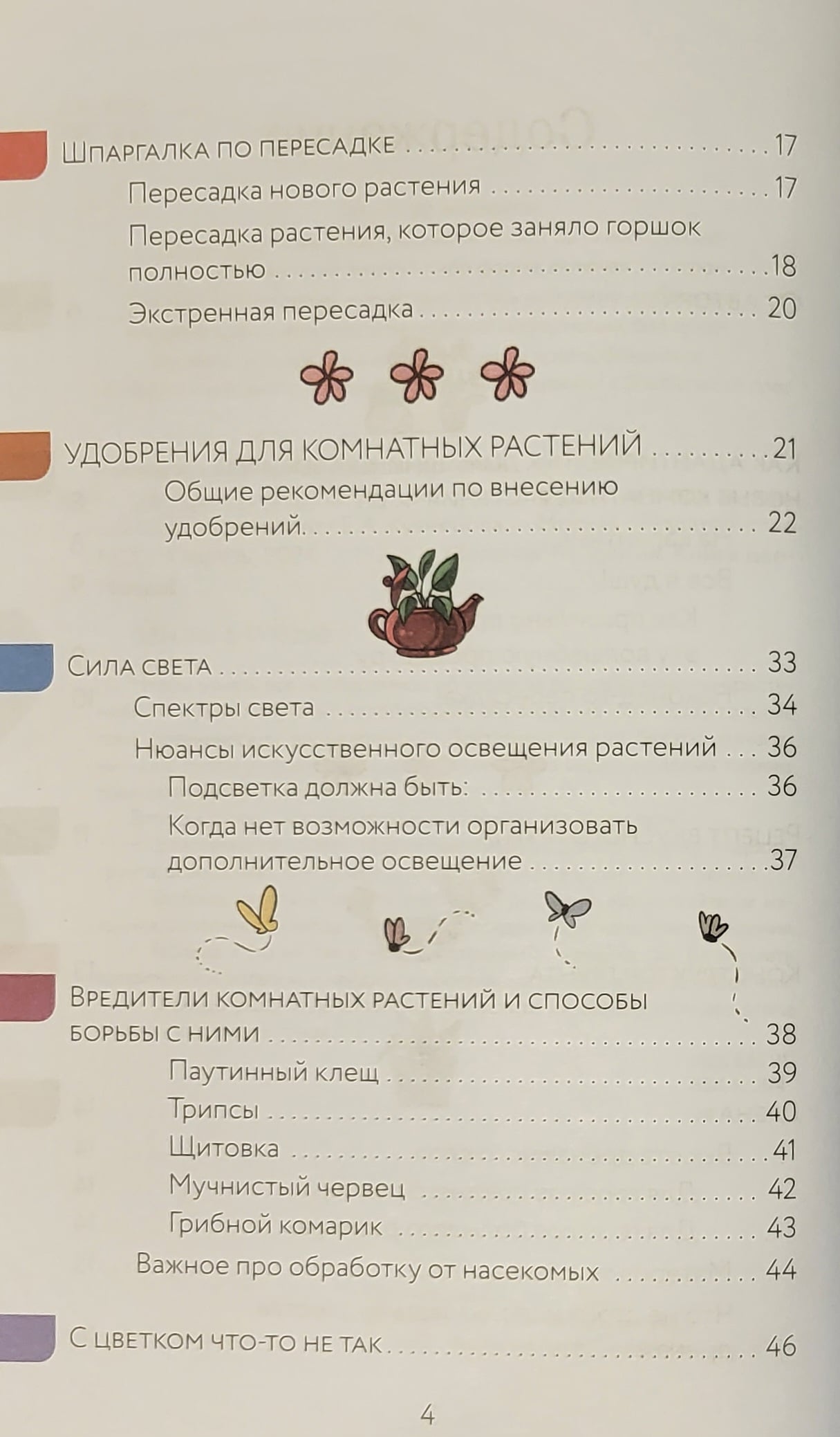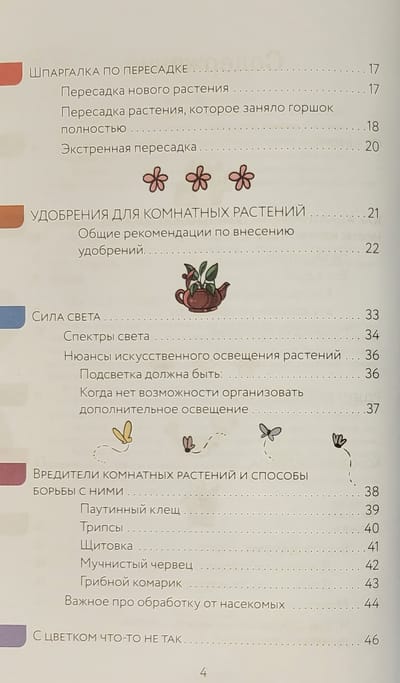 - Шпаргалки по уходу: подробные инструкции по поливу, подбору грунта, освещению, температуре, влажности и размещению растений;