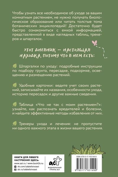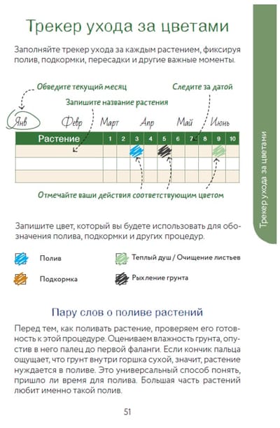 Чтобы узнать все необходимое об уходе за вашим комнатным растением, не нужно получать биологическое образование или читать толстые тома ботанических энциклопедий! Достаточно будет быстро ознакомиться с емкой информацией, представленной в виде наглядных таблиц, трекеров и шпаргалок.