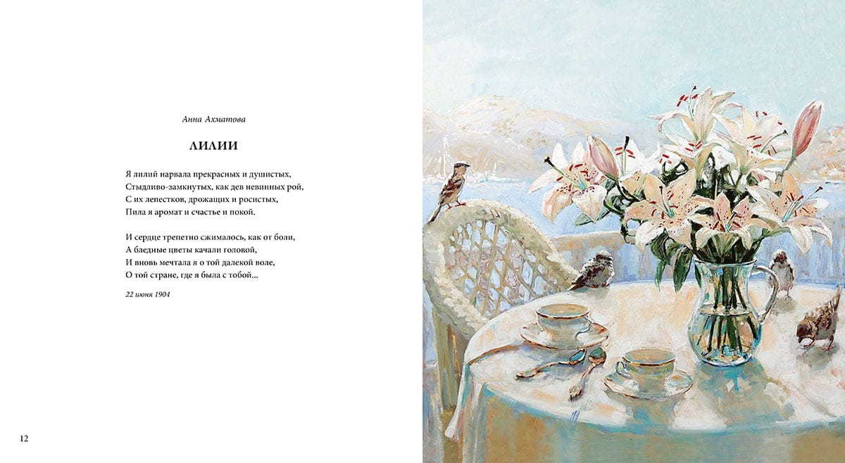 Цветы — особая глава в русской поэзии; они и символ, и знак, и воплощение чистой красоты. Цветы очаровывают душу и утешают сердце, зарождают мечты и пробуждают воспоминания, вдохновляют и приносят радость. Поэтические строки русских классиков XIX–XX веков — Константина Бальмонта и Анны Ахматовой, Афанасия Фета и Ивана Бунина, Валерия Брюсова Игоря Северянина и других мастеров — проведут читателя в цветочный сад, ставший возможным на страницах этой книги: здесь, в великолепных картинах петербуржской художницы Марии Павловой, робкий первый ландыш соседствует с обаятельным георгином, яркие всполохи маков оттеняют фарфоровую бледность лилий, скромные васильки здороваются с безмятежными нарциссами. У каждого из них свое настроение, блестяще вплетенное в образцовые и живописные стихотворные строки и обрамленное роскошными иллюстрациями — чтобы стать настоящим украшением библиотеки читателя.