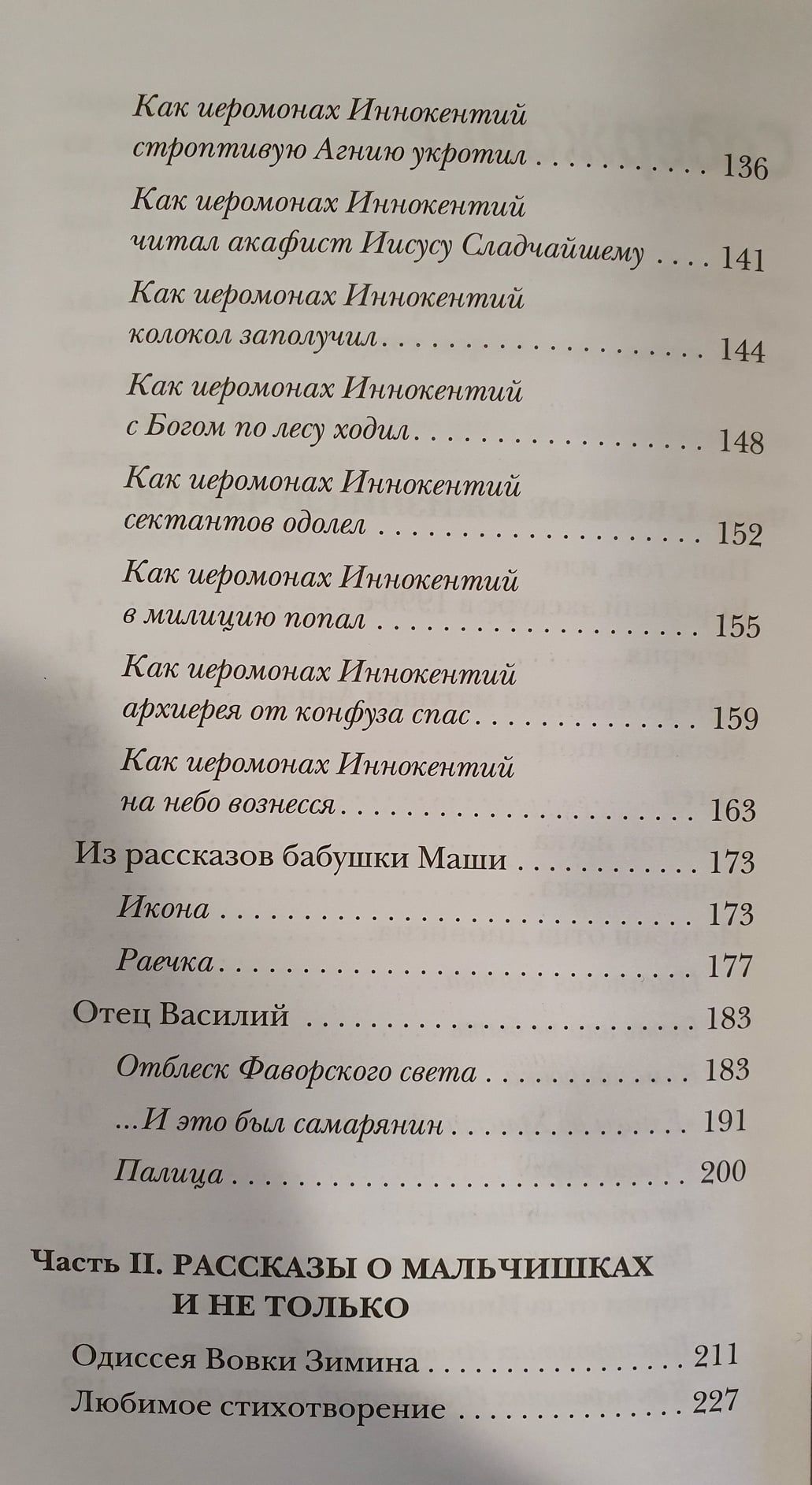 Рассказы протоиерея Владимира Гофмана, члена Союза писателей России, настоятеля Крестовоздвиженского храма в селе Катунки Нижегородской области, наполнены глубоким смыслом, читаются на одном дыхании и оставляют после себя очень светлое чувство. Пронзительная правда жизни, неподдельная любовь автора к каждому своему герою, кем бы он ни был, — вот в чем притягательная сила его произведений. Во второй части книги собраны рассказы о детстве, когда, по словам автора, «мальчишки еще читали книги про рыцарей и пиратов, про индейцев и мушкетеров...». Но от этого истории не теряют своей актуальности. Герои живут вне времени, ведь автор затрагивает вечные темы — дружбы, взаимопомощи, простых, теплых человеческих отношений. Язык повествования при этом легкий, эмоциональный, емкий и образный.
