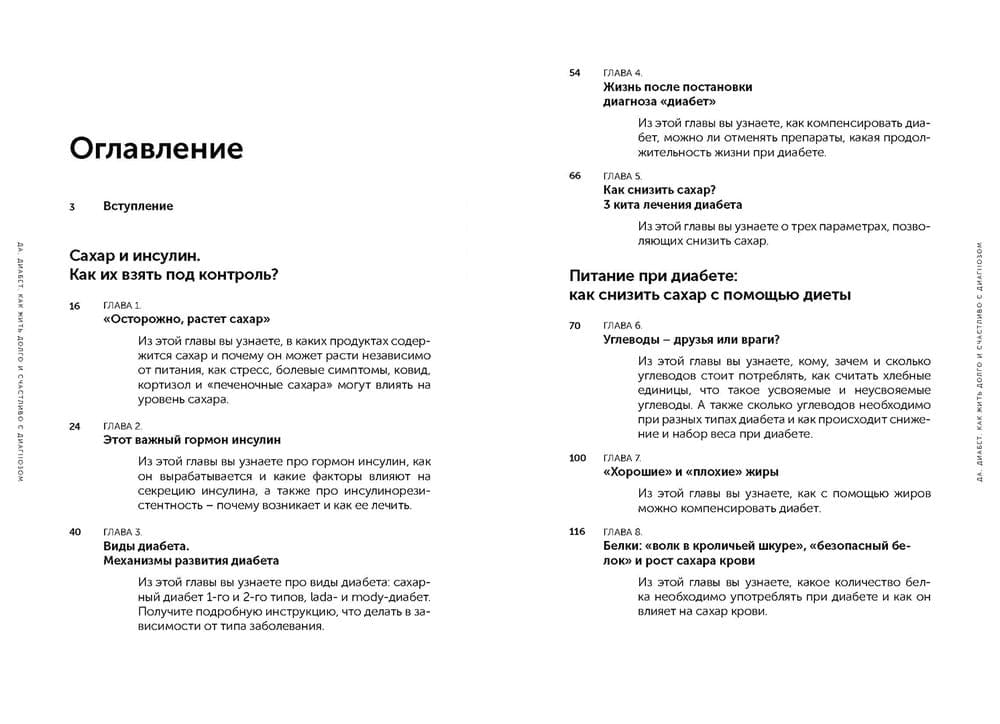 Ольга Павлова, практикующий врач-эндокринолог, автор популярного блога на Youtube, написала книгу, которая станет настольной для каждого пациента с диагнозом «сахарный диабет». Ее можно читать с самого начала или изучать интересные для вас главы, из которых вы узнаете, как развивается заболевание, о современных методах лечения, эффективных диетах и подборе физических нагрузок. Бытовые понятные примеры, самые острые вопросы пациентов и их самые частые ошибки и заблуждения - всё это вы найдете в книге. Благодаря грамотным советам профессионала вы сможете привести сахар в норму, избежать развития осложнений, будете чувствовать себя энергично на протяжении долгих лет, ведь диабет в любом возрасте - это не приговор!
