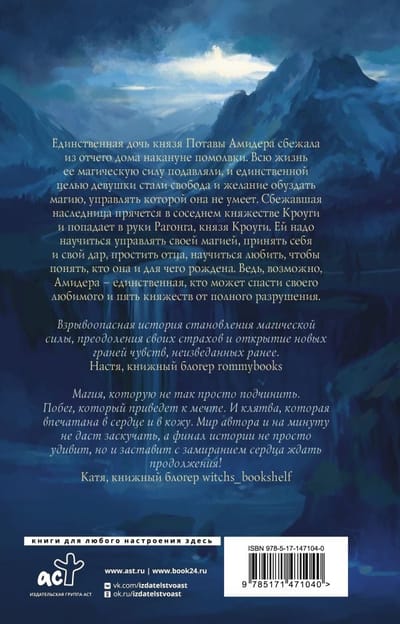 Единственная дочь князя Потавы Амидера сбежала из отчего дома накануне помолвки. Всю жизнь ее магическую силу подавляли, и единственной целью девушки стали свобода и желание обуздать магию, управлять которой она не умеет. Сбежавшая наследница прячется в соседнем княжестве Кроуги и попадает в руки Рагонга, князя Кроуги. Ей надо научиться управлять своей магией, принять себя и свой дар, простить отца, научиться любить, чтобы понять, кто она и для чего рождена. Ведь, возможно, Амидера – единственная, кто может спасти своего любимого и пять княжеств от полного разрушения.