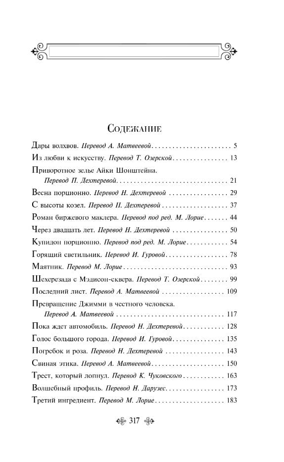 В сборник вошли рассказы с неожиданными развязками. Их герои — то просто «маленькие люди» большого Нью-Йорка, то легкомысленные и веселые художники и писатели, то парни из лихого бандитского района и их трогательно верные подруги, то обитатели Дикого Запада — ковбои, ранчеры, фермеры. Их сюжеты всегда захватывающе увлекательны, развязки — стремительны и неожиданны. Все они полны тонкого юмора, неожиданных сравнений и непредсказуемых развязок. Герои рассказов благородны и романтичны, изобретательны и находчивы, оптимистичны и жизнелюбивы и находят выход из любой ситуации.