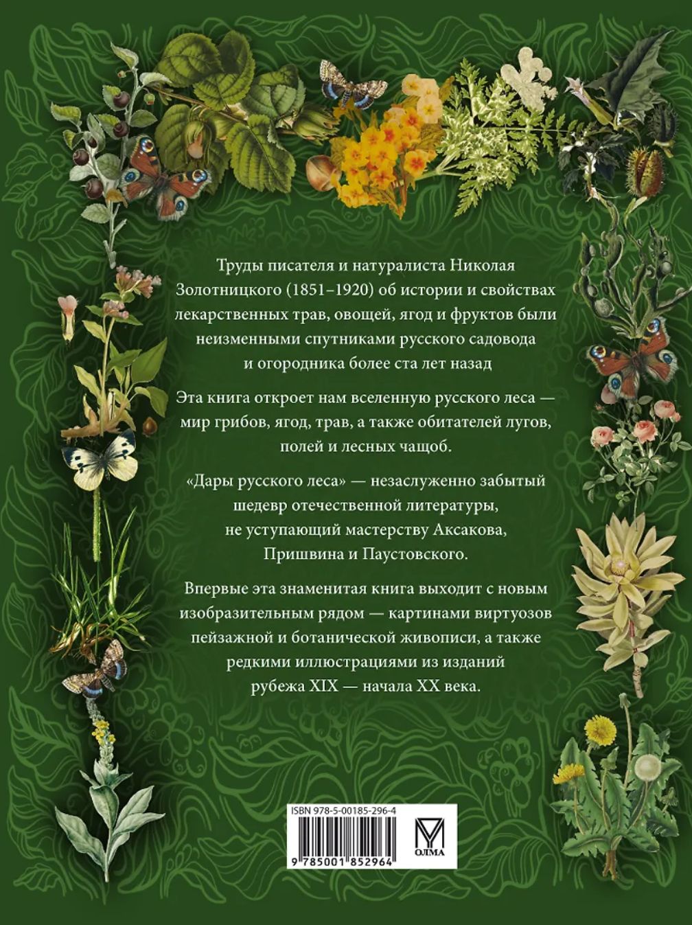 Эта книга откроет нам вселенную русского леса — мир грибов, ягод, трав, а также обитателей лугов, полей и лесных чащоб. «Дары русского леса» — незаслуженно забытый шедевр отечественной литературы, не уступающий мастерству Аксакова, Пришвина и Паустовского.