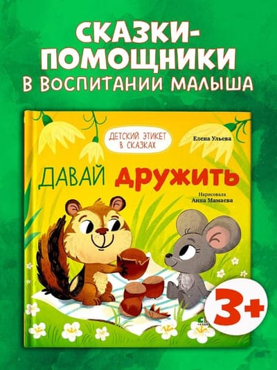 Воспитание в сказках — методика известного писателя Елены Ульевой. Послушав добрые и веселые сказки о милых зверюшках из книги «Детский этикет в сказках. Давай дружить!», малыши смогут узнать, что такое дружба, как нужно себя вести, чтобы найти друзей и весело играть вместе.