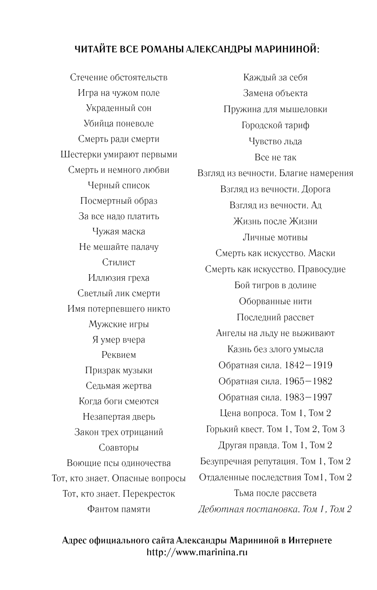 1966 год. В качестве подставки убийца выбрал черную, отливающую аспидным лаком крышку рояля. Расставил на ней тринадцать блюдец и на них уже — горящие свечи. Внимательно осмотрел кушетку, на которой лежал мертвец, убрал со столика опустошенные коробочки из-под снотворного. Остался последний штрих, вишенка на торте… Убийца аккуратно положил на грудь певца фотографию женщины и полоску бумаги с короткой фразой, написанной печатными буквами. Полвека спустя этим делом увлекся молодой журналист Петр Кравченко. Легендарная Анастасия Каменская, оперативник в отставке, помогает ему установить контакты с людьми, причастными к тем давним событиям и способными раскрыть мрачные секреты прошлого…