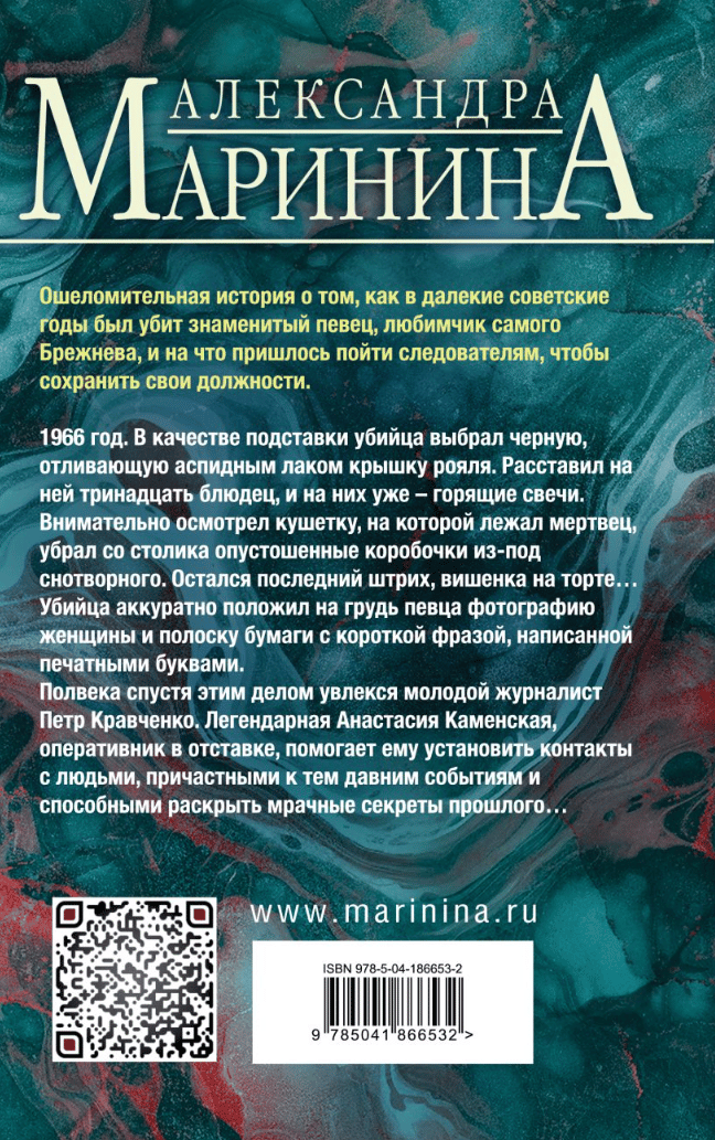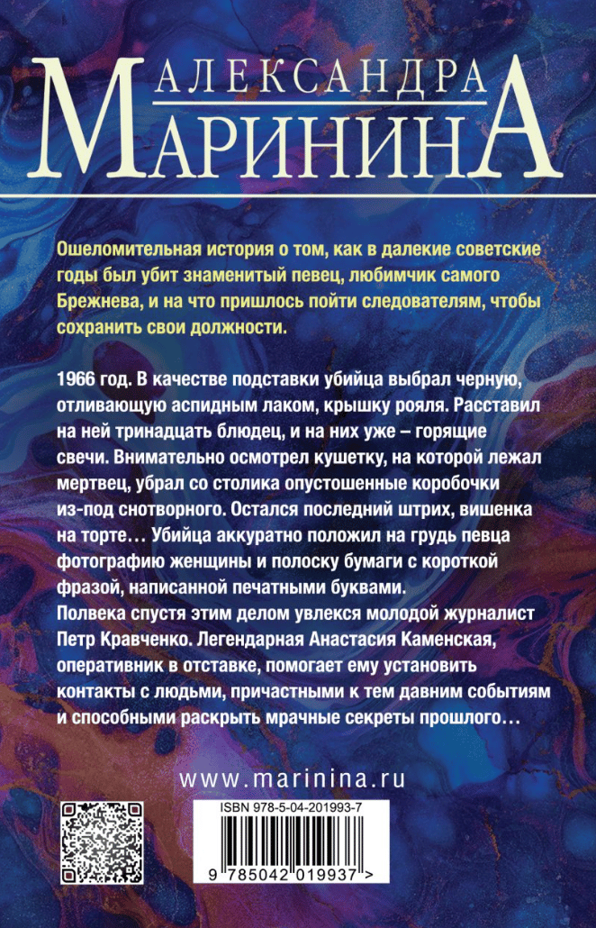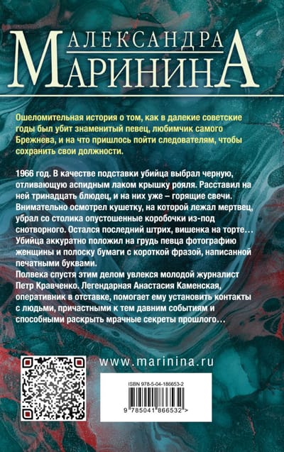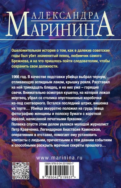 Полвека спустя этим делом увлекся молодой журналист Петр Кравченко. Легендарная Анастасия Каменская, оперативник в отставке, помогает ему установить контакты с людьми, причастными к тем давним событиям и способными раскрыть мрачные секреты прошлого…