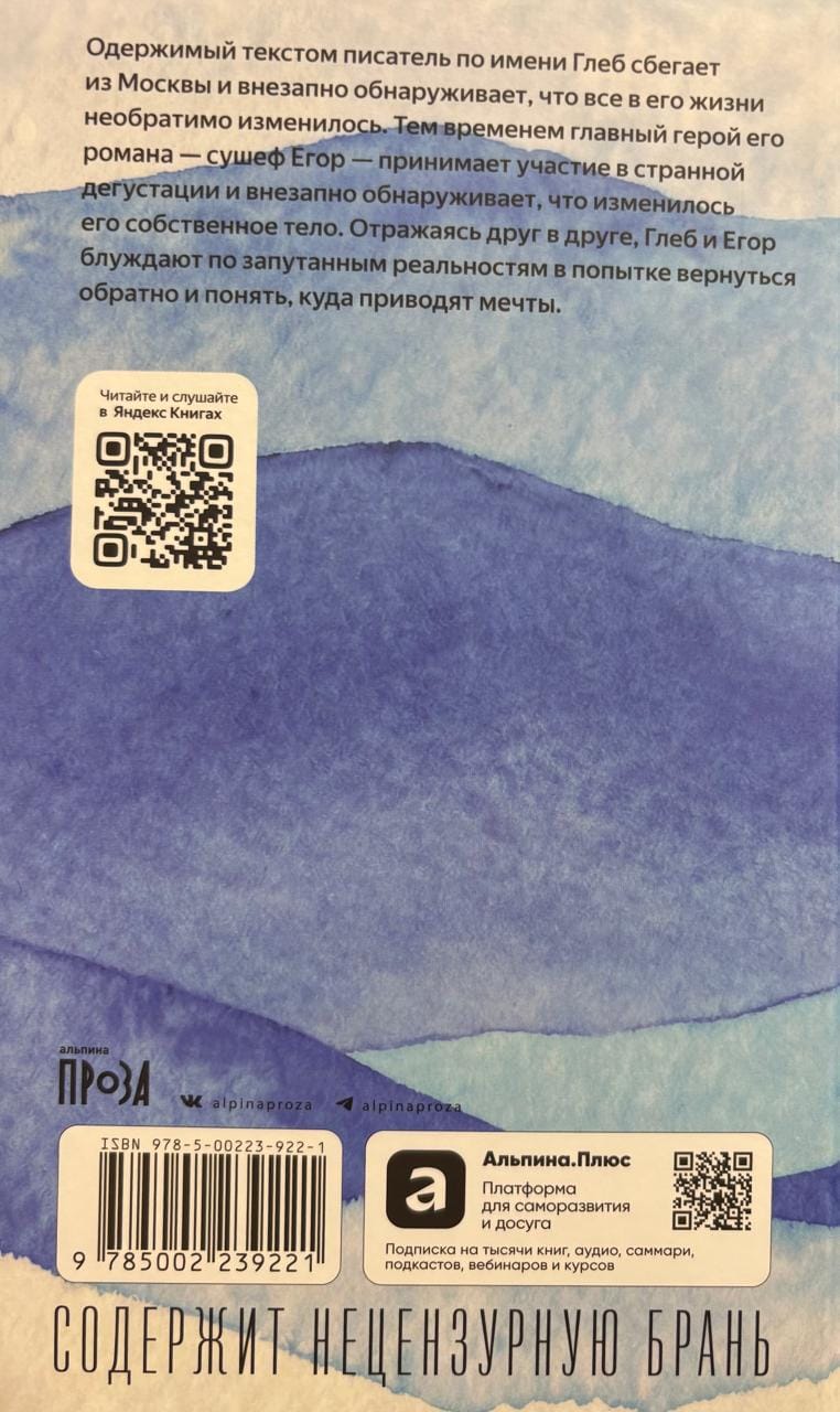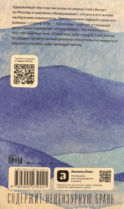 Одержимый текстом писатель по имени Глеб сбегает из Москвы и внезапно обнаруживает, что все в его жизни необратимо изменилось. Тем временем главный герой его романа — сушеф Егор — принимает участие в странной дегустации и внезапно обнаруживает, что изменилось его собственное тело. Отражаясь друг в друге, Глеб и Егор блуждают по запутанным реальностям в попытке вернуться обратно и понять, куда приводят мечты.