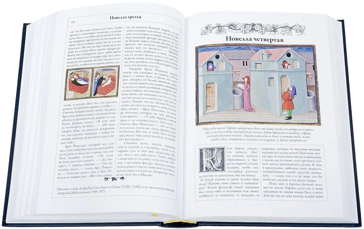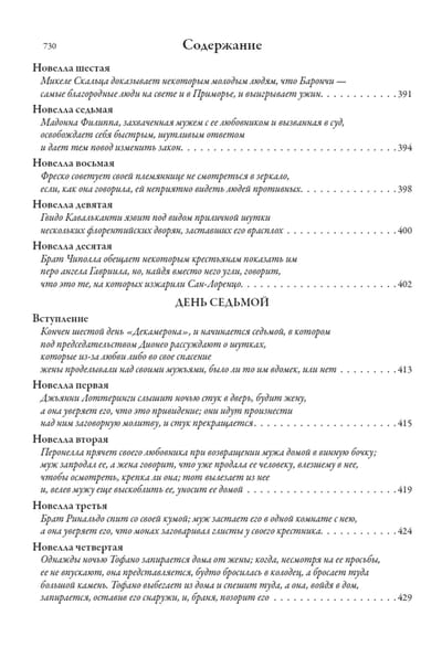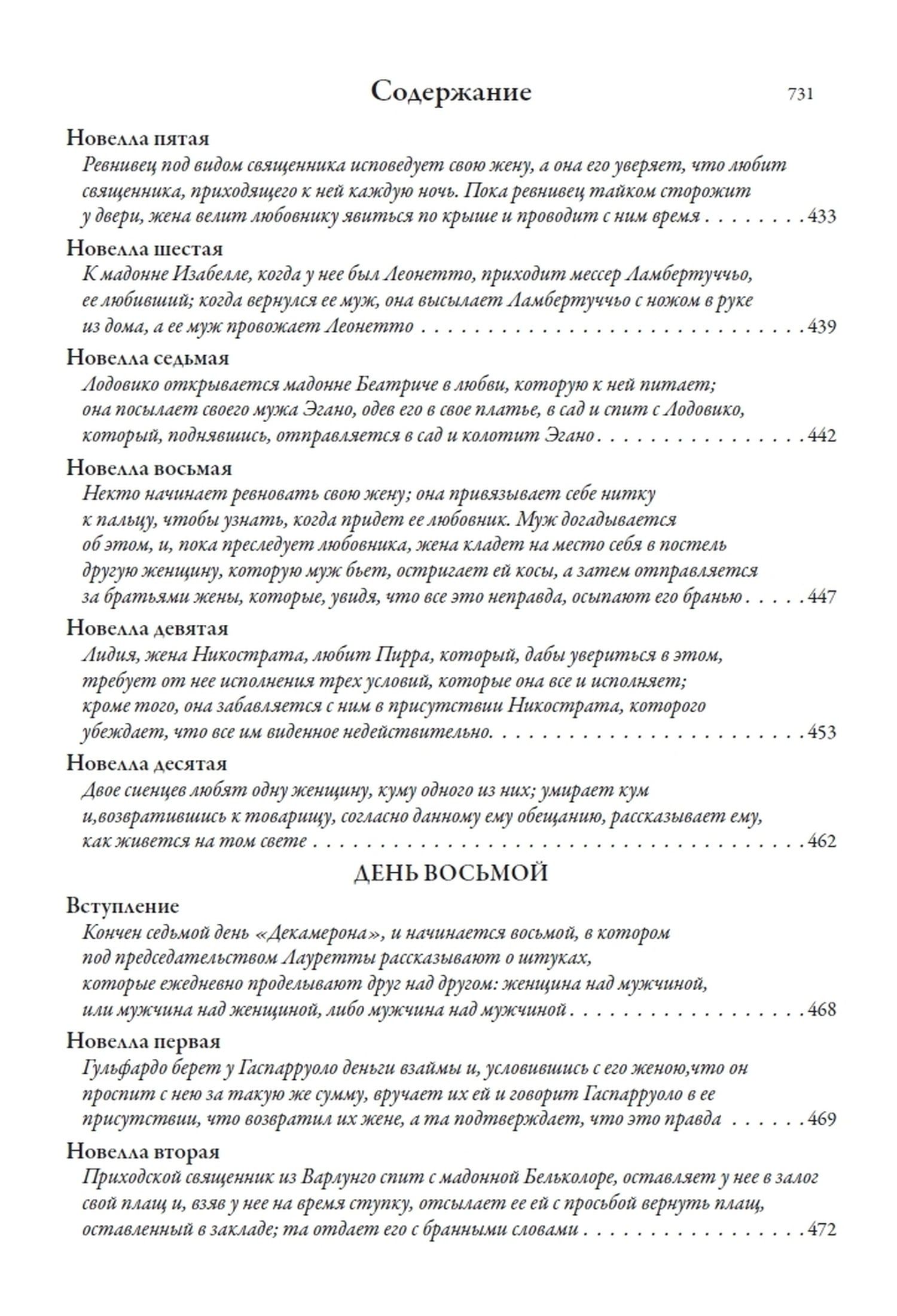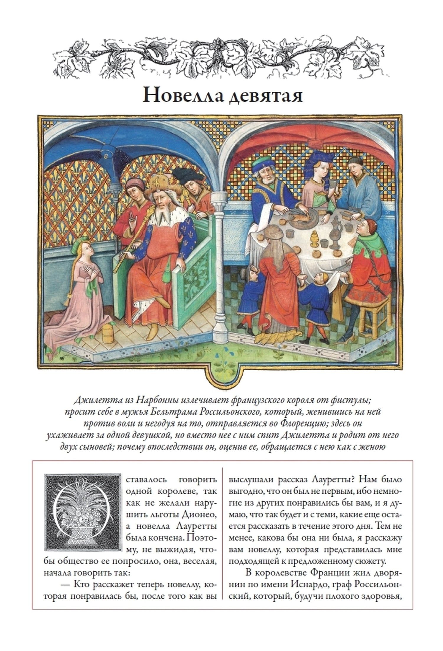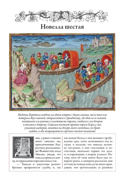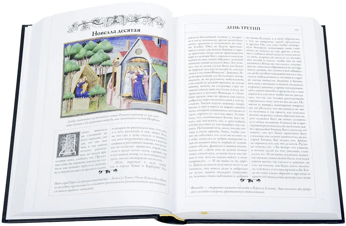 Первое издание его перевода появилось в 1891–1892 гг. Текст был напечатан в двух вариантах; 1000 экземпляров содержали пропуски мест, не допущенных цензурой, и лишь 100 книг были напечатаны без купюр. Примечательно, что издания советского времени, как и публикации «Декамерона», появившиеся уже в XXI веке, также были неполными. Данная публикация лишена этого недостатка. Впервые за более чем вековую историю отечественных изданий знаменитого произведения Боккаччо, читатели могут познакомиться с полным переводом «Декамерона» без каких-либо сокращений. Данное издание великолепно иллюстрировано французскими гравюрами XIX века, а также цветными миниатюрами из французского манускрипта начала XV века.
