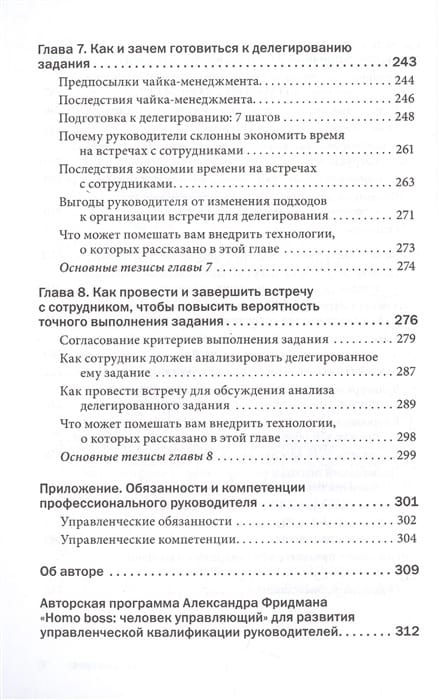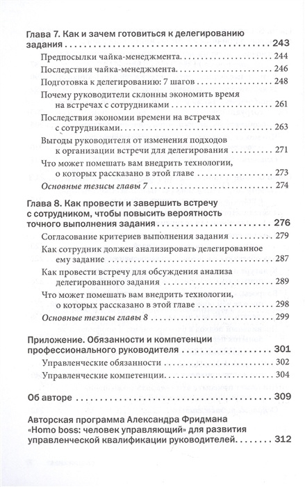 Делегирование — одна из фундаментальных управленческих процедур, так как именно с ее помощью руководитель получает нужные результаты «руками сотрудников». И хотя делегирование относят к азам менеджмента, большинство руководителей не умеют пользоваться этим важнейшим инструментом управления и поэтому не могут добиться от подчиненных нужных результатов. Как и любой инструмент, делегирование обеспечивает нужный результат лишь при правильном применении и создает проблемы, если использовать его неправильно. Это уникальное практическое руководство поможет вам объективно посмотреть на реальность и разобрать причины своих прежних управленческих ошибок и неудач. Вместе с Александром Фридманом вы шаг за шагом построите собственную систему делегирования и получите огромный практический инструментарий для радикального повышения точности управления любым коллективом, от небольшой рабочей группы до целой компании. Как и в своих предыдущих книгах, ставших бестселлерами и классикой деловой литературы, Александр Фридман последовательно придерживается жесткого и прагматичного подхода к управлению, учитывая особенности национального менталитета и российских обычаев ведения бизнеса.