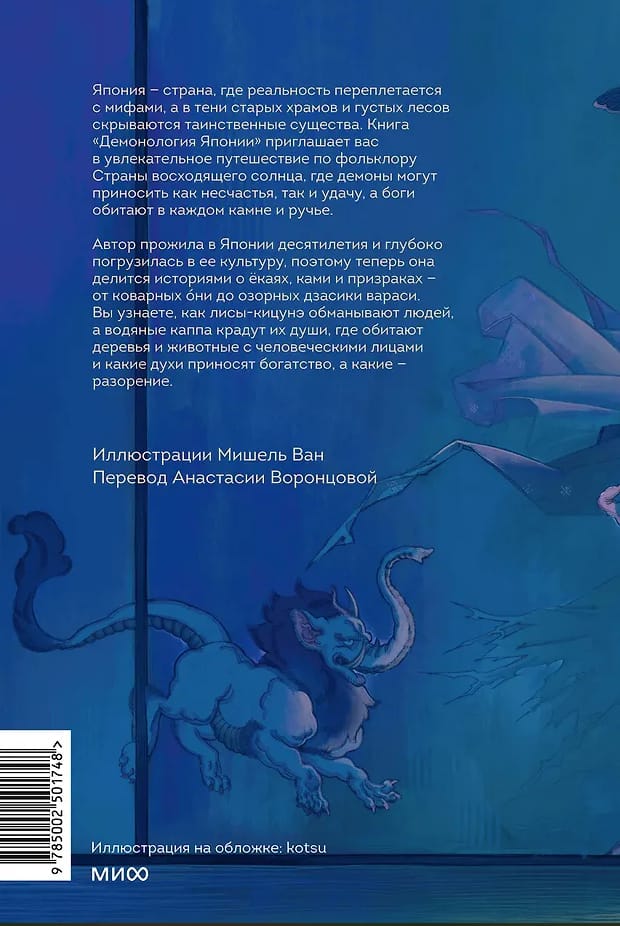 Автор прожила в Японии десятилетия и глубоко погрузилась в ее культуру, поэтому теперь она делится историями о ёкаях, ками и призраках — от коварных о́ни до озорных дзасики вараси. Вы узнаете, как лисы-кицунэ обманывают людей, а водяные каппа крадут их души, где обитают деревья и животные с человеческими лицами и какие духи приносят богатство, а какие — разорение.