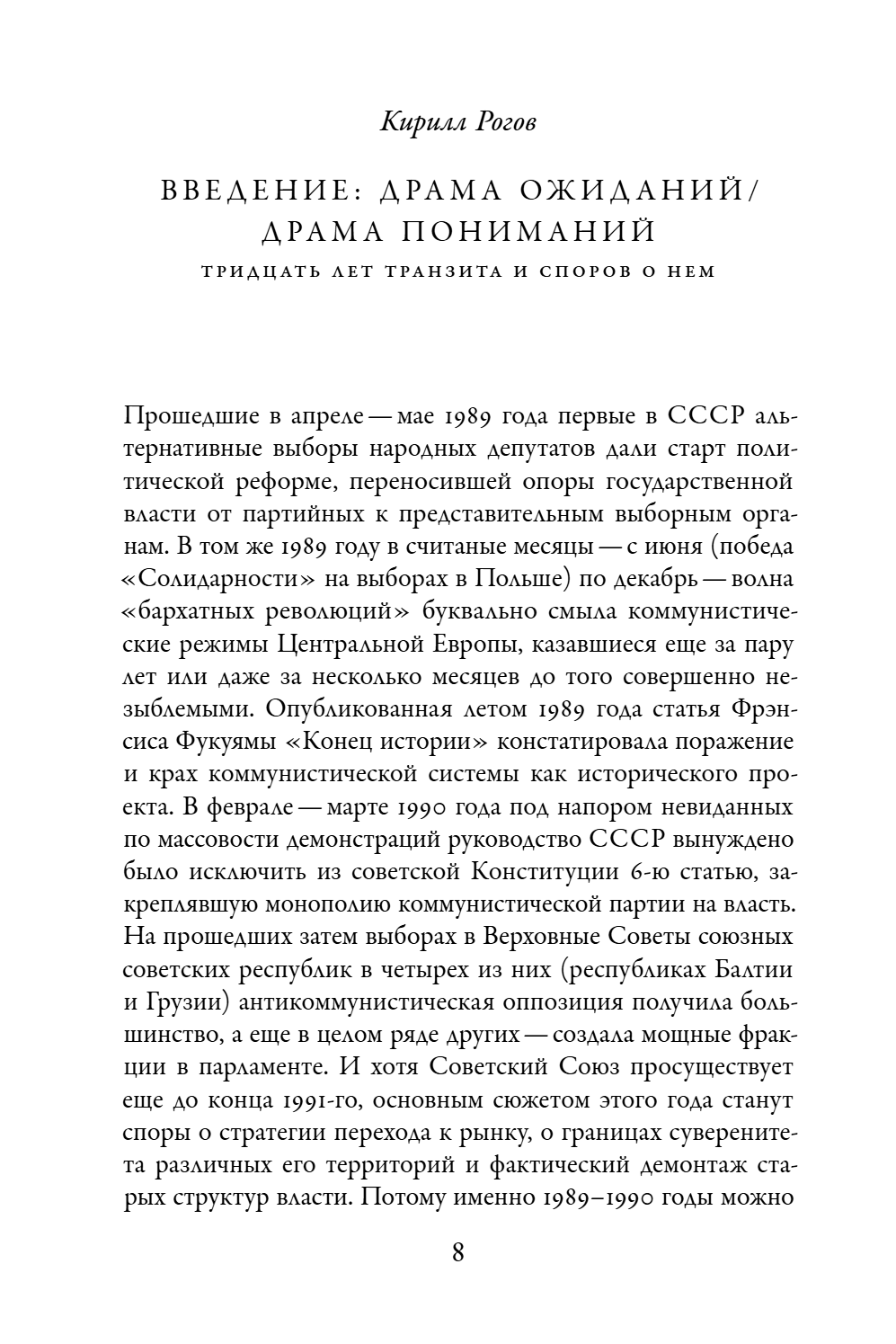 Эта книга посвящена 30-летию падения Советского Союза, завершившего каскад крушений коммунистических режимов Восточной Европы. С каждым десятилетием, отделяющим нас от этих событий, меняется и наш взгляд на их последствия — от рационального оптимизма и веры в реформы 1990-х годов до пессимизма в связи с антилиберальными тенденциями 2010-х. Авторы книги, ведущие исследователи, историки и социальные мыслители России, Европы и США, представляют читателю срез современных пониманий и интерпретаций как самого процесса распада коммунистического пространства, так и ключевых проблем посткоммунистического развития. У сборника два противонаправленных фокуса: с одной стороны, понимание прошлого сквозь призму сегодняшней социальной реальности, а с другой — анализ современной ситуации сквозь оптику прошлого. Дополняя друг друга, эти подходы позволяют создать объемную картину демонтажа коммунистической системы, а также выявить блокирующие механизмы, которые срабатывают в различных сценариях транзита.