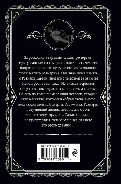 За роскошно накрытым столом ресторана, сервированным на семерых, сидят шесть человек. Напротив седьмого, пустующего места одиноко стоит веточка розмарина. Она знаменует память о Розмари Бартон, внезапно умершей за этим же столом ровно год назад. Не в силах пережить депрессию, она отравилась цианистым калием. Но есть по крайней мере один человек, который считает иначе, поэтому и собрал снова вместе всех свидетелей той смерти. Это — муж Розмари, получивший анонимное письмо о том, что его жену отравили. Однако он даже не представляет, чем закончится для него это расследование…