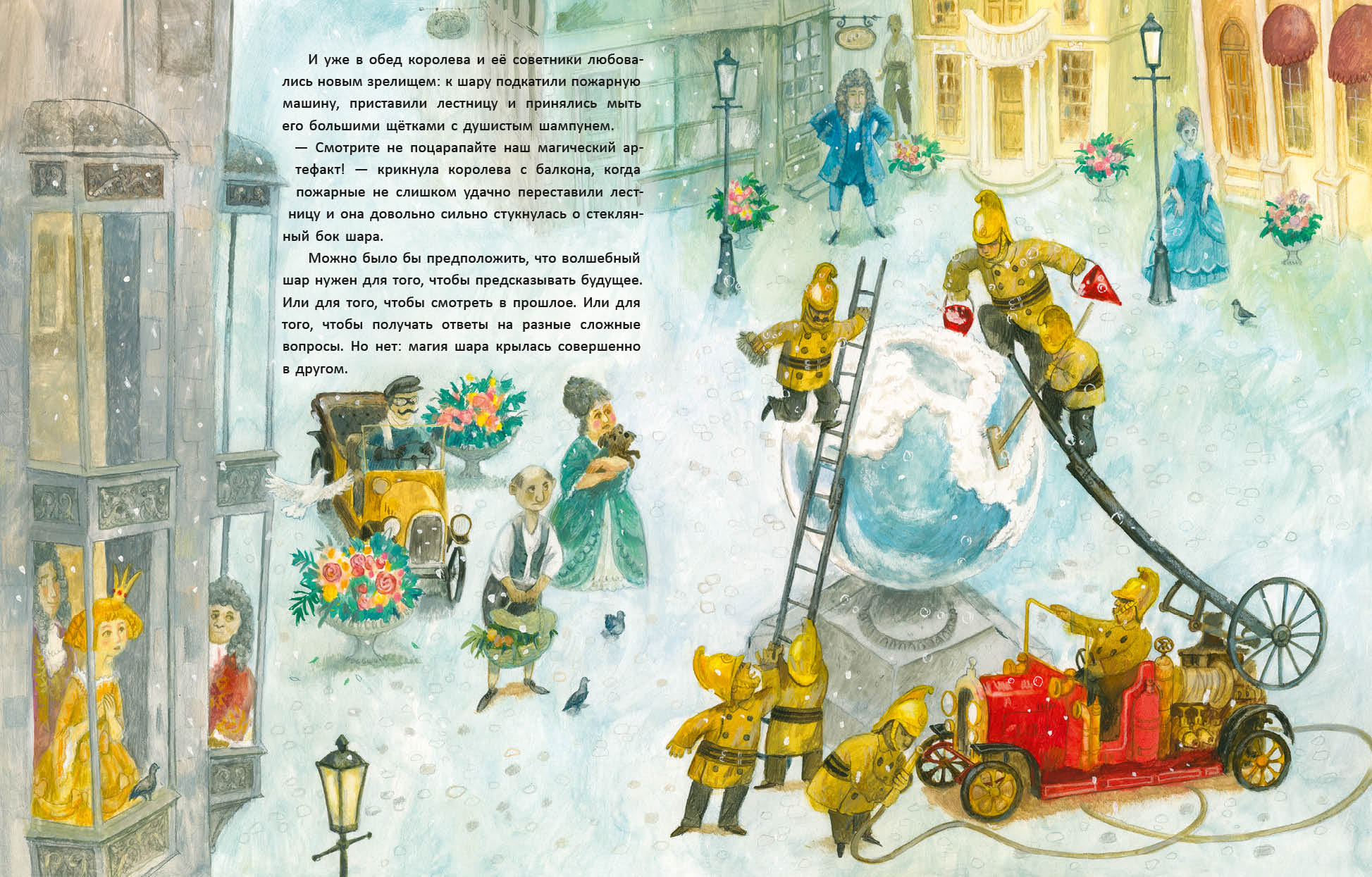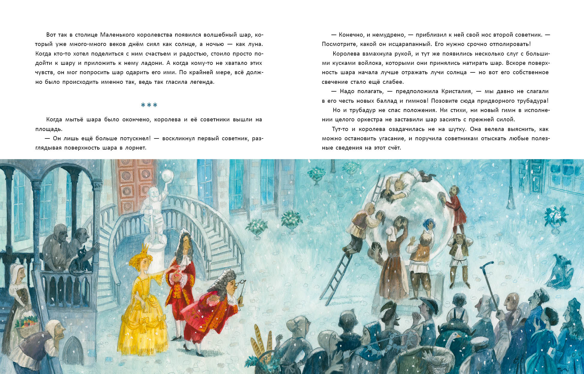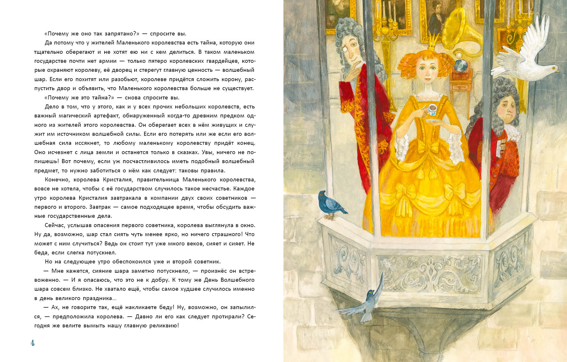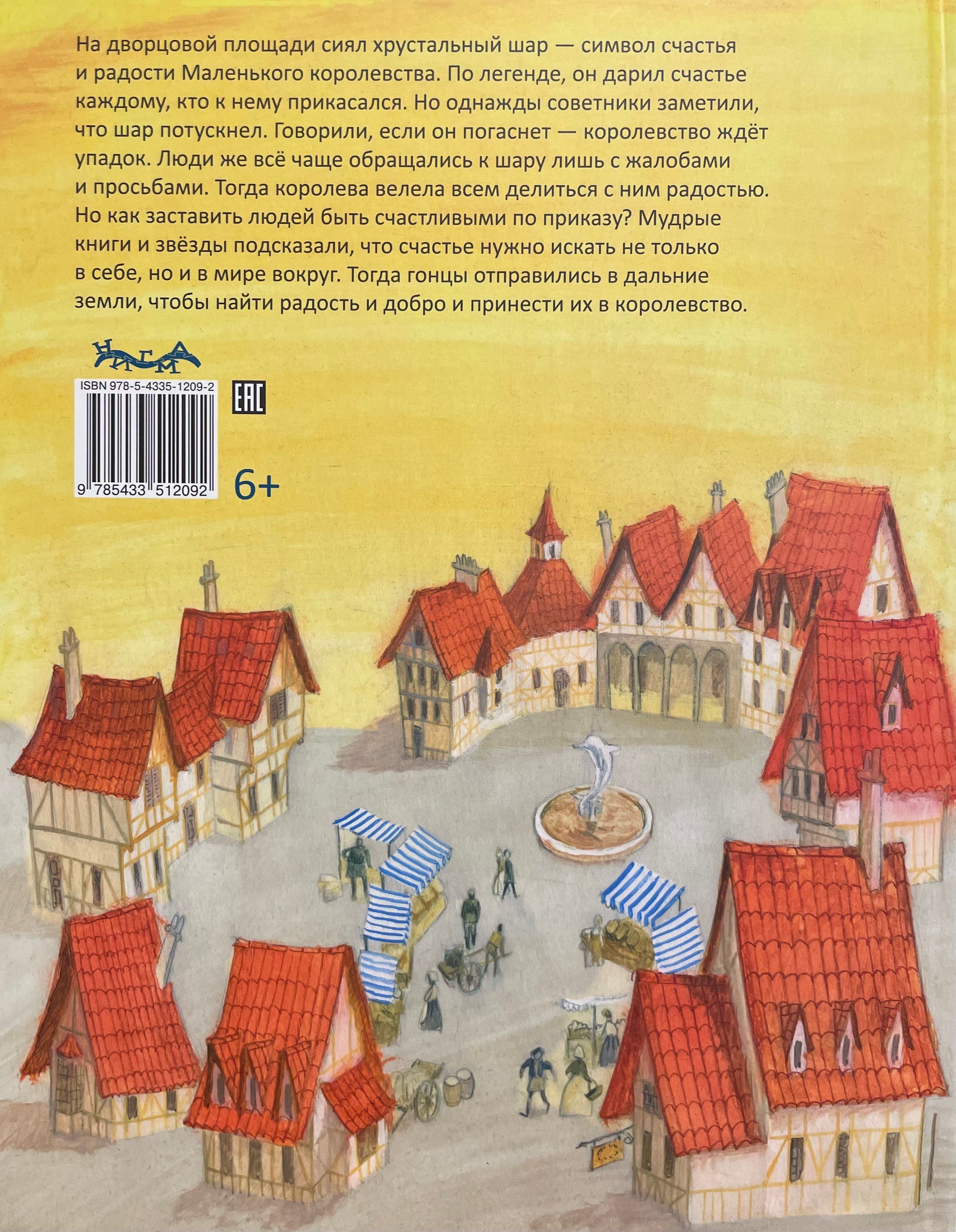 На дворцовой площади сиял хрустальный шар — символ счастья и радости Маленького королевства. По легенде, он дарил счастье каждому, кто к нему прикасался. Но однажды советники заметили, что шар потускнел. Говорили, если он погаснет — королевство ждёт упадок. Люди же всё чаще обращались к шару лишь с жалобами и просьбами. Тогда королева велела всем делиться с ним радостью. Но как заставить людей быть счастливыми по приказу? Мудрые книги и звёзды подсказали, что счастье нужно искать не только в себе, но и в мире вокруг. Тогда гонцы отправились в дальние земли, чтобы найти радость и добро и принести их в королевство.