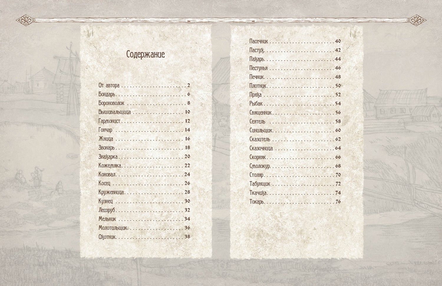 Наши предки, жившие в деревнях и сёлах, были настоящими умельцами и прежде всего ценили друг в друге трудолюбие. Каждый мужчина мог вспахать и засеять землю, срубить баню или избу, а женщина — спрясть не один моток нитей и выткать из них полотно. Но на этом занятия русских крестьян не заканчивались, ведь в деревне бытовали самые разные промыслы и ремёсла. Эта книга познакомит читателей со смолокуром и кожемякой, коновалом и кружевницей и многими другими мастерами своего дела, каждую главу о которых сопровождают старинные фотографии и красочные рисунки. А ещё расскажет, что значит «наводить украсы», без кого на деревне не обходился ни один праздник, у кого просили разрешения на работу лесорубы и зачем сеятель закапывал в землю два красных яйца.