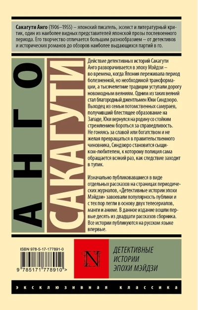 Изначально публиковавшиеся в виде отдельных рассказов на страницах периодических журналов, «Детективные истории эпохи Мэйдзи» завоевали популярность публики и с тех пор легли в основу двух телесериалов, манги и аниме. В данное издание вошли первые десять из двадцати рассказов сборника. Все истории публикуются на русском языке впервые.