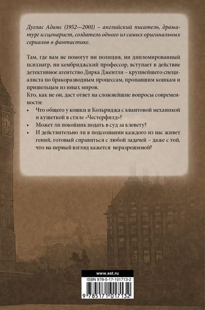 Там, где вам не помогут ни полиция, ни дипломированный психиатр, ни кембриджский профессор, вступает в действие детективное агентство Дирка Джентли — крупнейшего специалиста по бракоразводным процессам, пропавшим кошкам и пришельцам из иных миров.