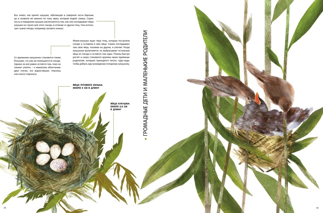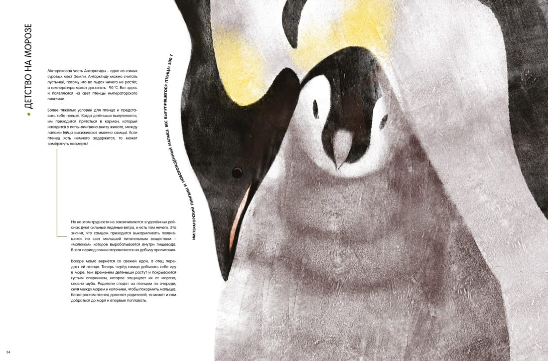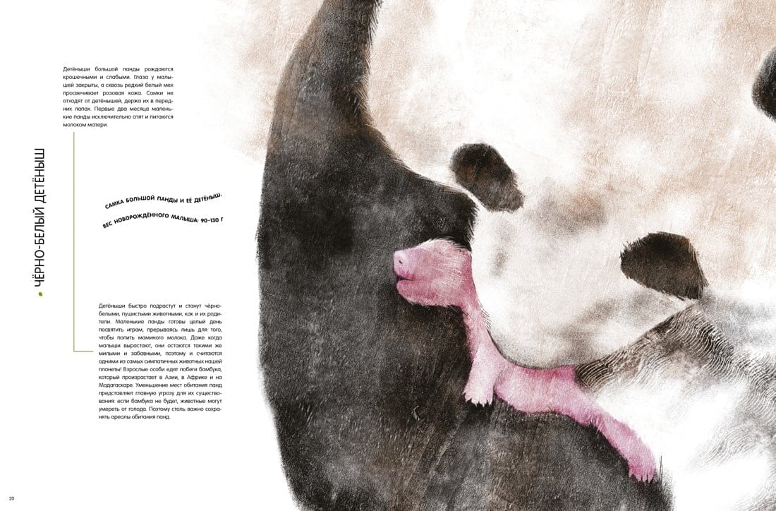 Сколько весит вылупившийся птенец императорского пингвина? Похожи ли детёныши панд и белых медведей на своих родителей? На страницах этой книги ты встретишь утят и цыплят, малышей кенгуру, вомбата и коалы, увидишь, как львица переносит львёнка. Большинство рисунков выполнено в натуральную величину! Также книга содержит много интересной информации об ареале обитания животных, их повадках, особенностях внешнего облика и о роли родителей в судьбах новорождённых и подрастающих малышей. Рассмотри детёнышей поближе и стань знатоком фауны!