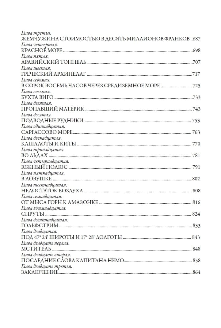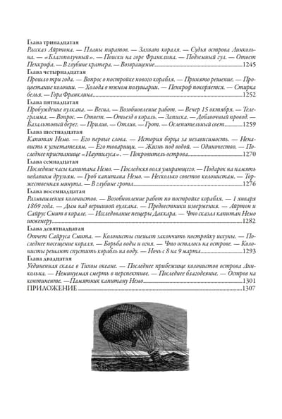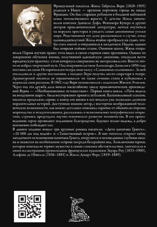 В данное издание вошло три крупных романа писателя: «Дети капитана Гранта», «20 000 лье под водой» и «Таинственный остров». В них читатель откроет тайну загадочного исчезновения капитана Гранта, погрузится в неизведанные глубины океана и окажется на необитаемом острове посреди бескрайних вод. Злоключения героев, которые никогда не теряют мужества в самых сложных обстоятельствах, запечатлели в своих иллюстрациях превосходные французские художники Эдуард Риу (1833–1900), Альфонс де Нёвилль (1836–1885) и Жюль-Декарт Фера (1819–1889).