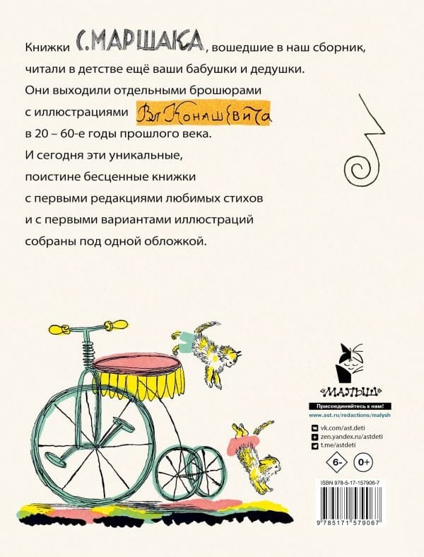 В книге собраны произведения двух классиков детской книги — поэта С. Маршака и художника В. Конашевича, — выходившие в разные годы начала ХХ века отдельными брошюрами. Это «Сказка о глупом мышонке», «Пожар», «Человек рассеянный», английские детские песенки и другие. С. Я. Маршак высоко ценил талант художника, он писал: «С благодарностью и гордостью могу отметить, что мои первые книги для детей были украшены рисунками Конашевича». Книги с яркими, праздничными иллюстрациями В. Конашевича продолжают радовать и современных детей.