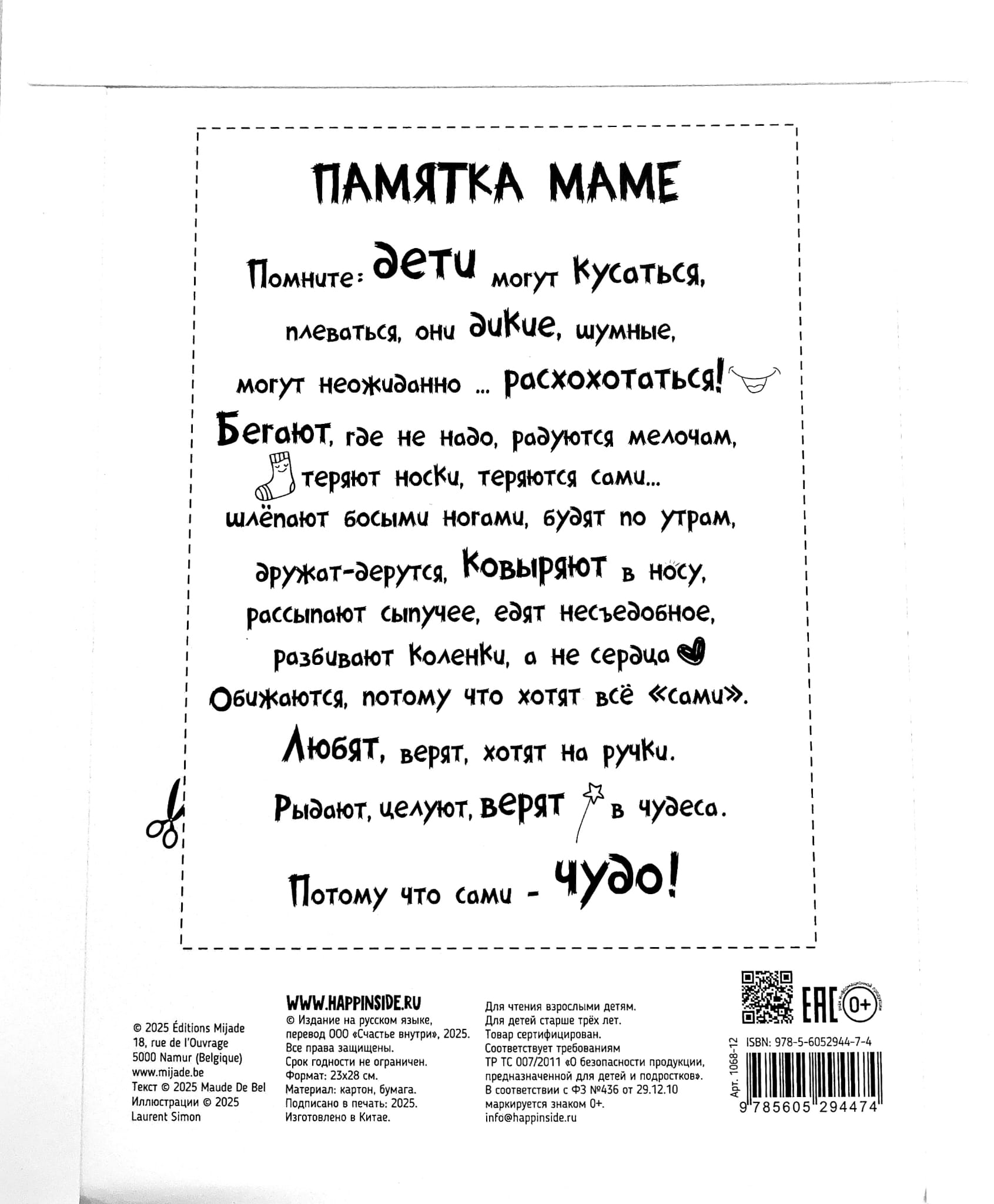 «Сбежавшая одежда» — это интересная поучительная сказка, которая способствует запуску речи и развитию воображения. Яркие художественные иллюстрации на каждой странице приглашают малышей исследовать мир слов и деталей по картинкам. Читая это терапевтическое стихотворение, ваш сын или дочь улучшает внимание и память, а также знакомится с важностью заботы о своих вещах. Это подарочное издание - отличное дополнение к книжным полкам вашего ребенка и прекрасно подходит для семейного прочтения литературы на ночь с родителями.