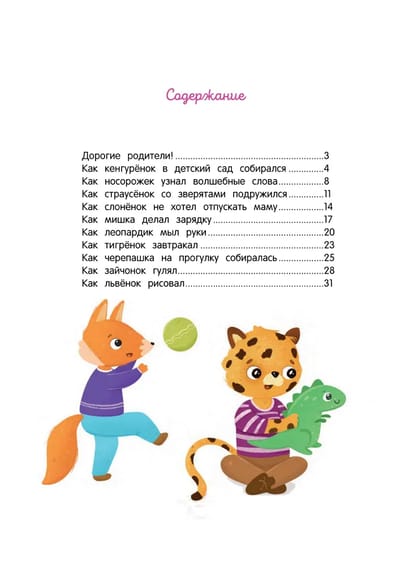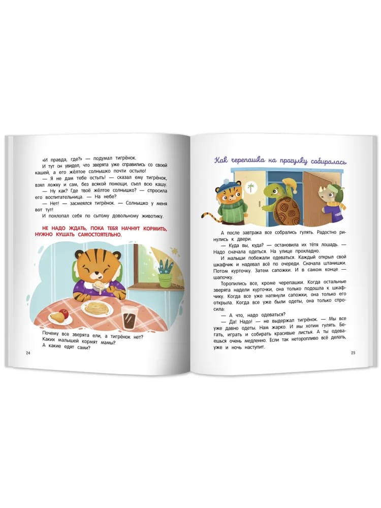 Увлекательные сказки расскажут ребенку о приключениях забавных зверушек в детском саду. Правила в конце каждой сказки помогут усвоить главную мысль, а вопросы заставят задуматься и научат выбирать правильную модель поведения. Всё это поможет малышу успешно адаптироваться в саду, освоиться в детском коллективе, научиться строить отношения со сверстниками и взрослыми.