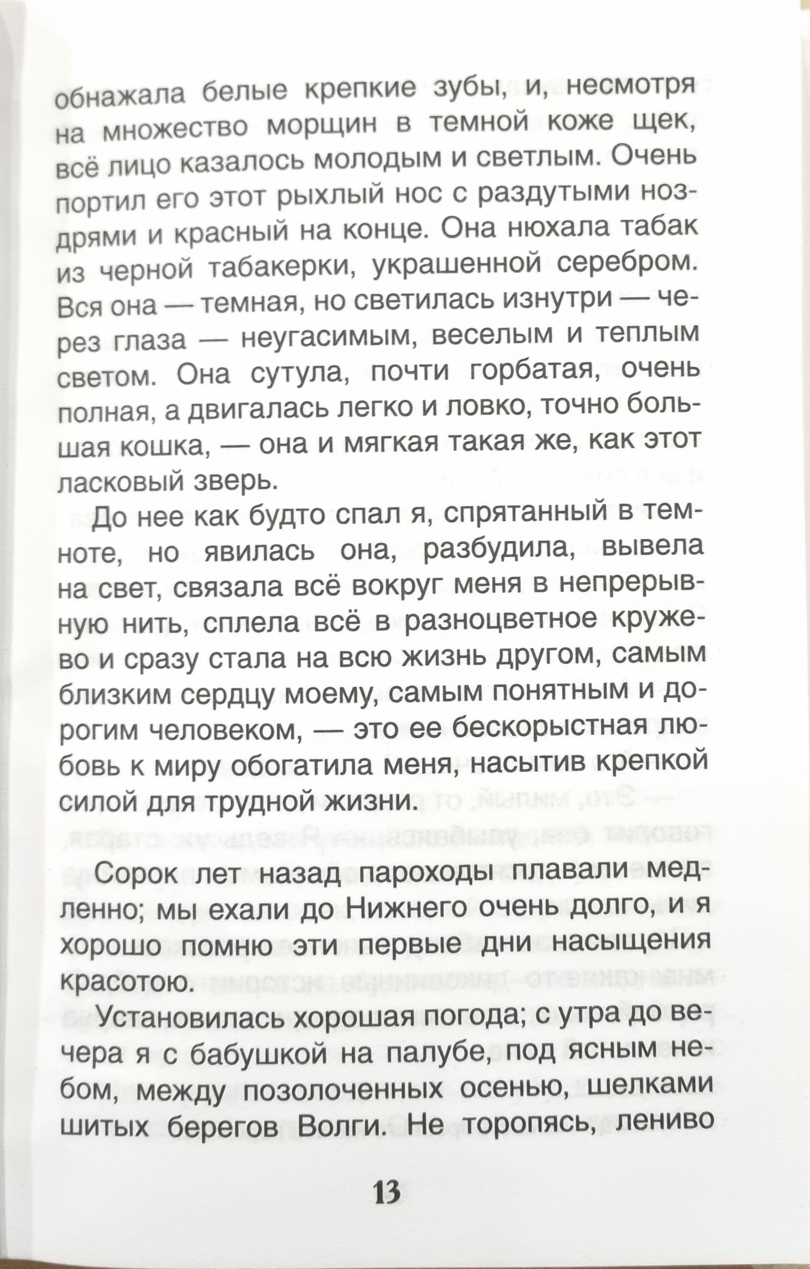 В книгу вошла первая повесть знаменитой автобиографической трилогии «Детство», «В людях», «Мои университеты», признанной одним из самых значительных произведений Максима Горького. В ней писатель рассказывает о трудных годах своего детства. После смерти отца мальчик попадает в дом своего деда, наполненный «горячим туманом взаимной вражды всех со всеми». Только бабушка старалась окружить Алешу любовью и заботой, но никогда не смела перечить мужу-тирану.